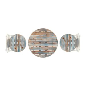 Entertain your friends with the Alpine Corporation 3-Piece Weathered Wood Bistro Set. This beautiful outdoor furniture set adds a stylish and artful touch to your patio, porch or yard. You’ll be able to enjoy lovely summer days with your friends and family, sipping on lemonade or coffee while sitting at the round table in matching chairs. Made of durable, weather-resistant steel and wood, this set includes two folding chairs and one table. When winter comes around, the 2 chairs will fold to provide easy storage. With a 1-year warranty, you can be confident in the quality of your purchase. The Alpine Corporation Rustic Bistro table measures 24″L x 24″W x 28″H and chairs measure 16″L x 19″W x 37″H.