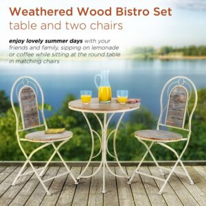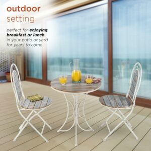 – 3-PIECE SET: Rustic bistro set includes round table and 2 matching chairs, perfect for your backyard, patio, deck, or garden