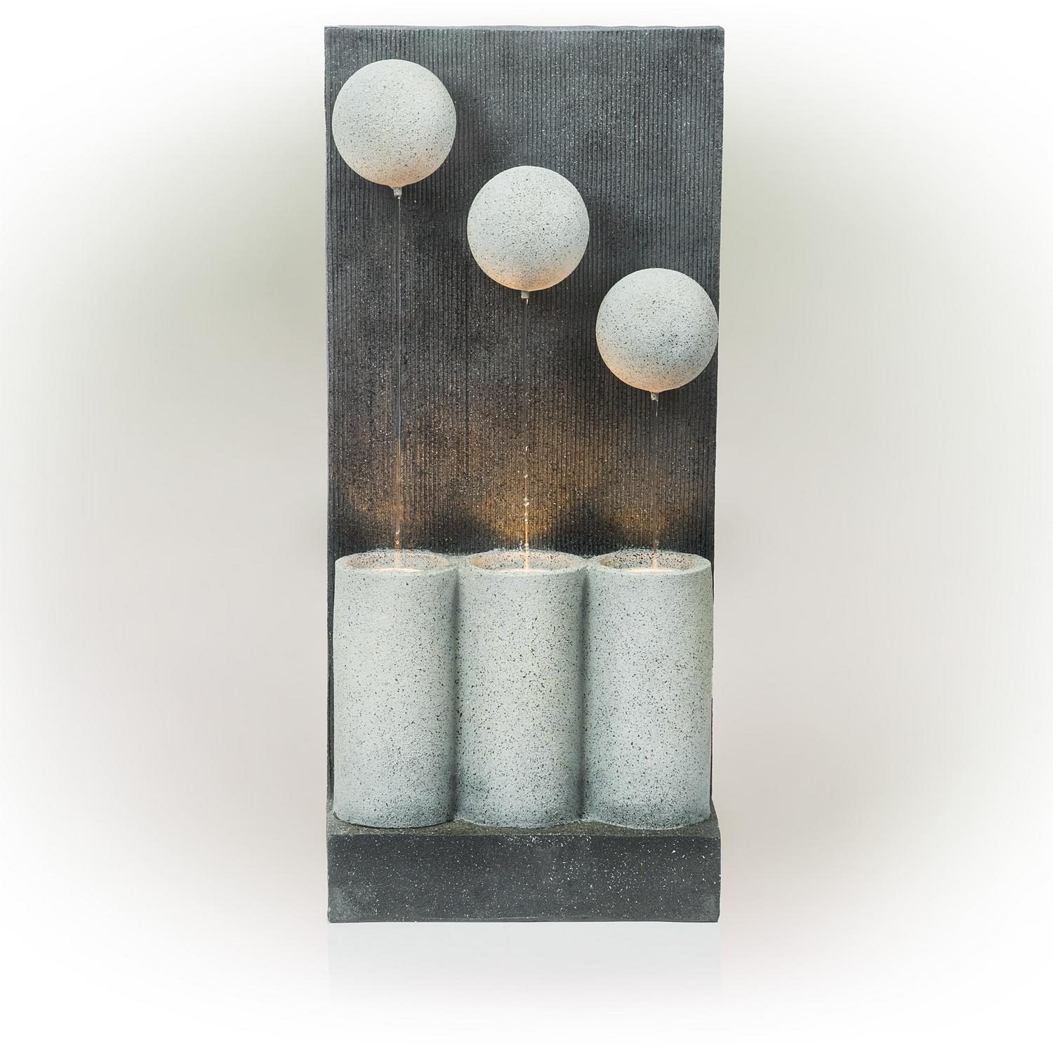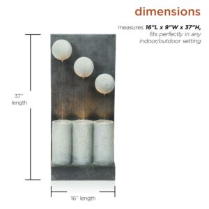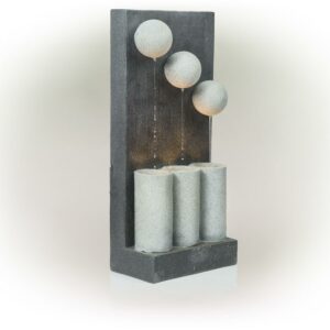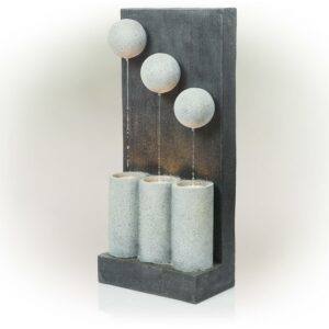 Enhance your indoor or outdoor living space with the Alpine Corporation Infinity Floor Fountain. Functional and attractive, this contemporary fountain creates a Zen-like atmosphere in almost any indoor or outdoor setting including porches, yards, gardens, patios, sunrooms, living rooms, and more. The soft, natural sounds of water streaming from each orb creates a calm and relaxing atmosphere, and the fountain’s modern design with rough-textured cylindrical columns and orbs that imitate natural stone adds breathtaking style to your home. It features 3 long-lasting LED lights that effortlessly illuminate the fountain. Constructed from durable polystone, this infinity fountain is weatherproof and rust-resistant to offer years of quality use. The fountain measures 16″ x 9″ x 37″ for the perfect fit inside or outside your home.