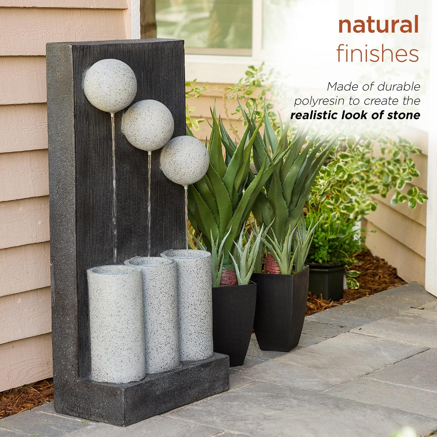 – NATURAL TRANQUILITY: Relax to the sounds of the calming natural water stream as it flows from each orb in to the cylinder below it, while adding visual interest to your outdoor garden or courtyard