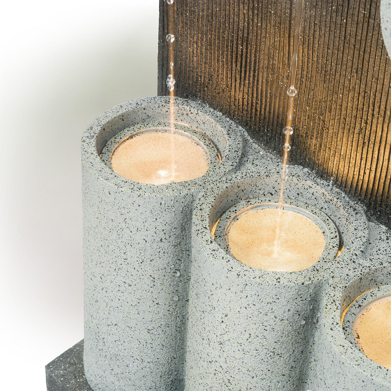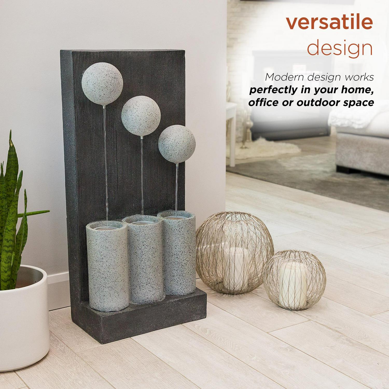 – INTEGRATED LED LIGHTING: Create a relaxing and romantic ambiance to your patio, yard, or home with the 3 long-lasting LED lights featured on each cylinder of the modern Zen water fountain