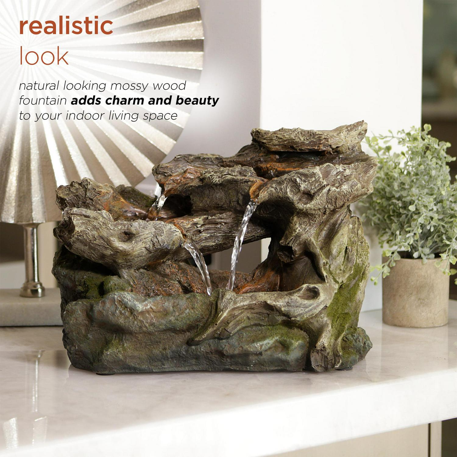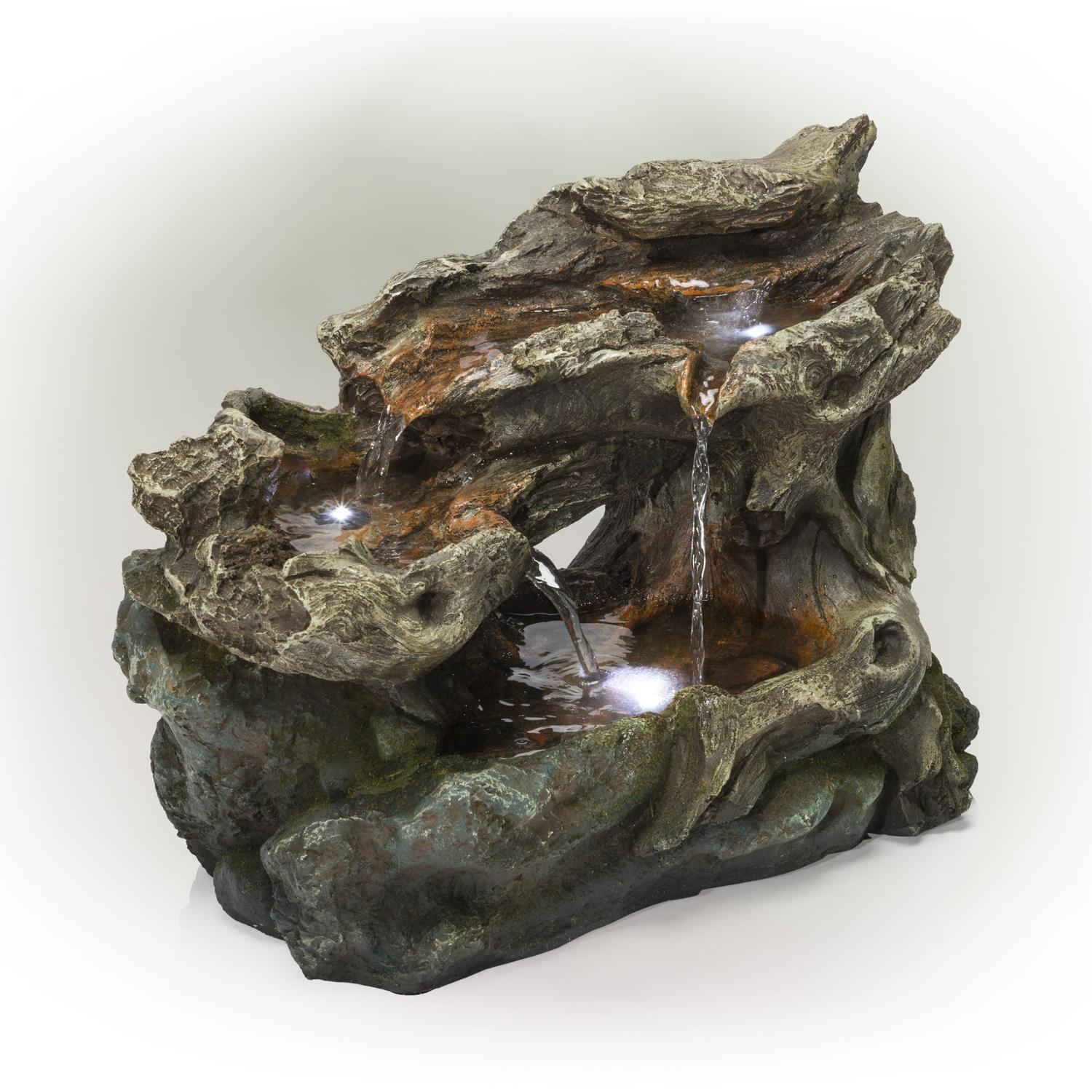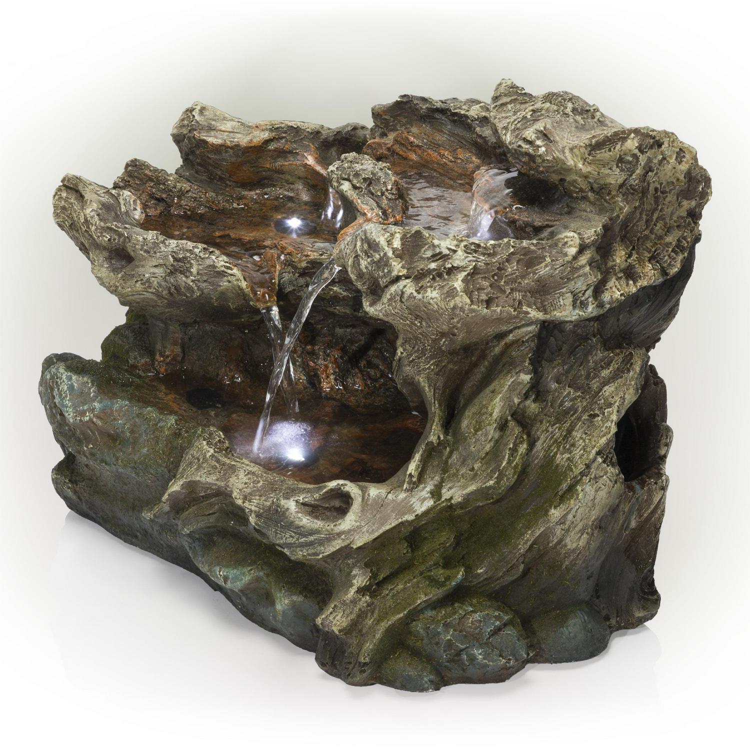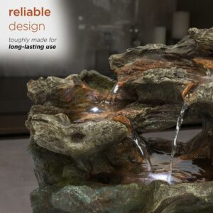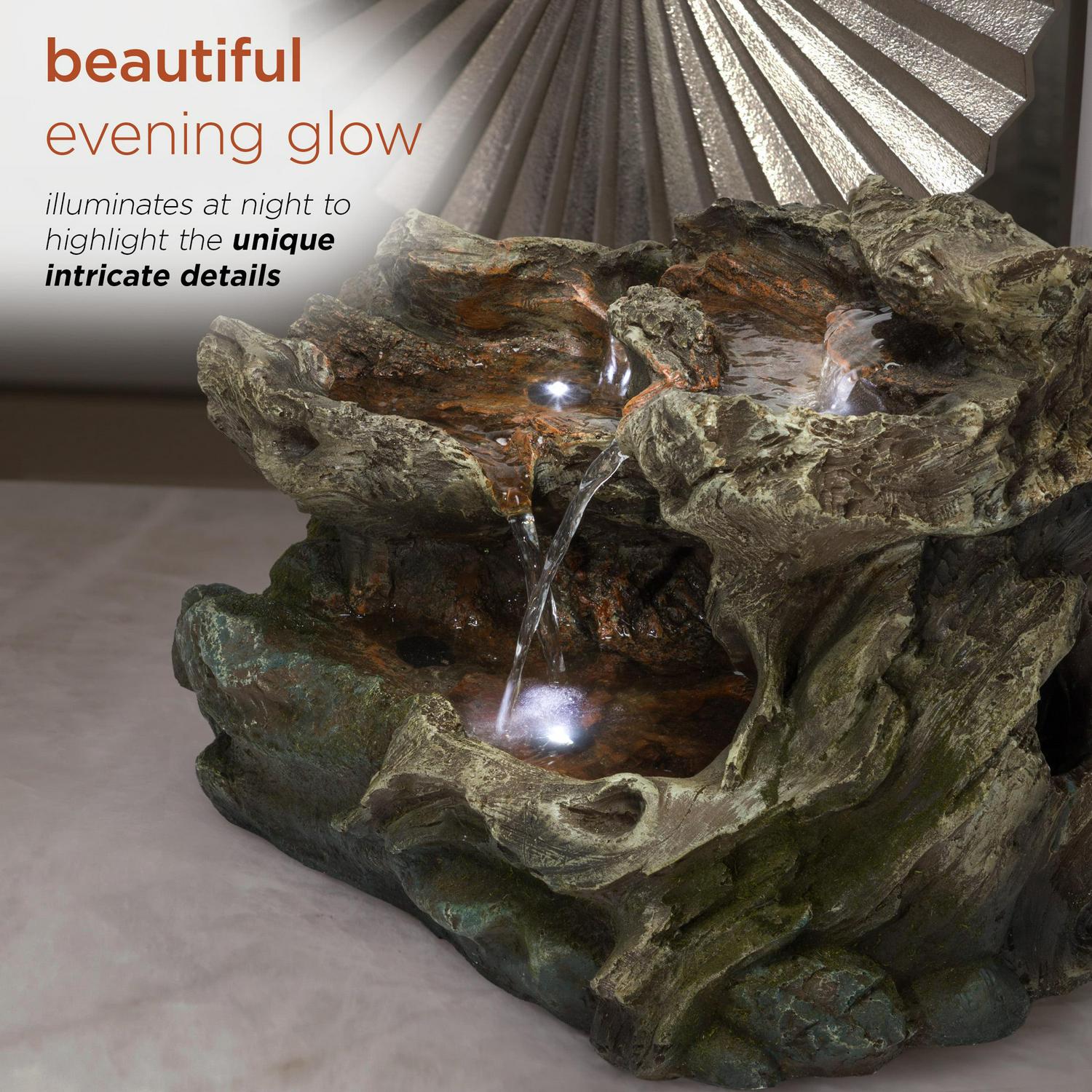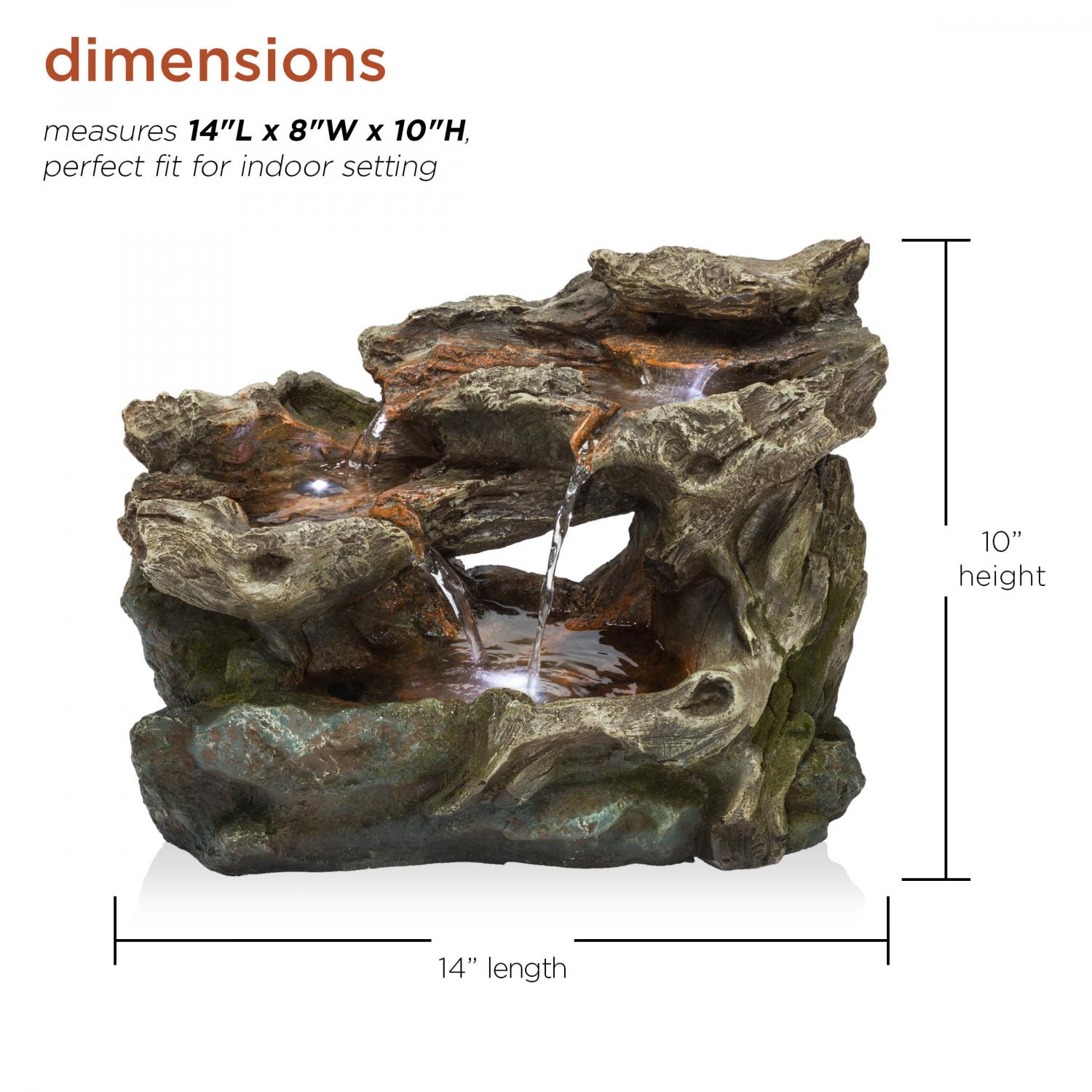 Alpine Corporation 3 Tier Rainforest Tabletop Fountain w/ LED Lights, 10 Inch Tall