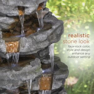 Alpine 39-Inch Cascading Stone Wall Fountain with Cool White LED Lights