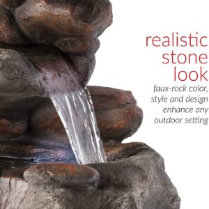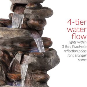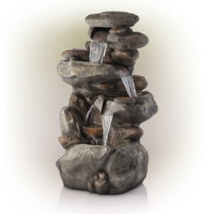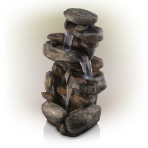 Alpine Corporation 4-Tier Rock Water Outdoor Electric Fountain with LED Lights
