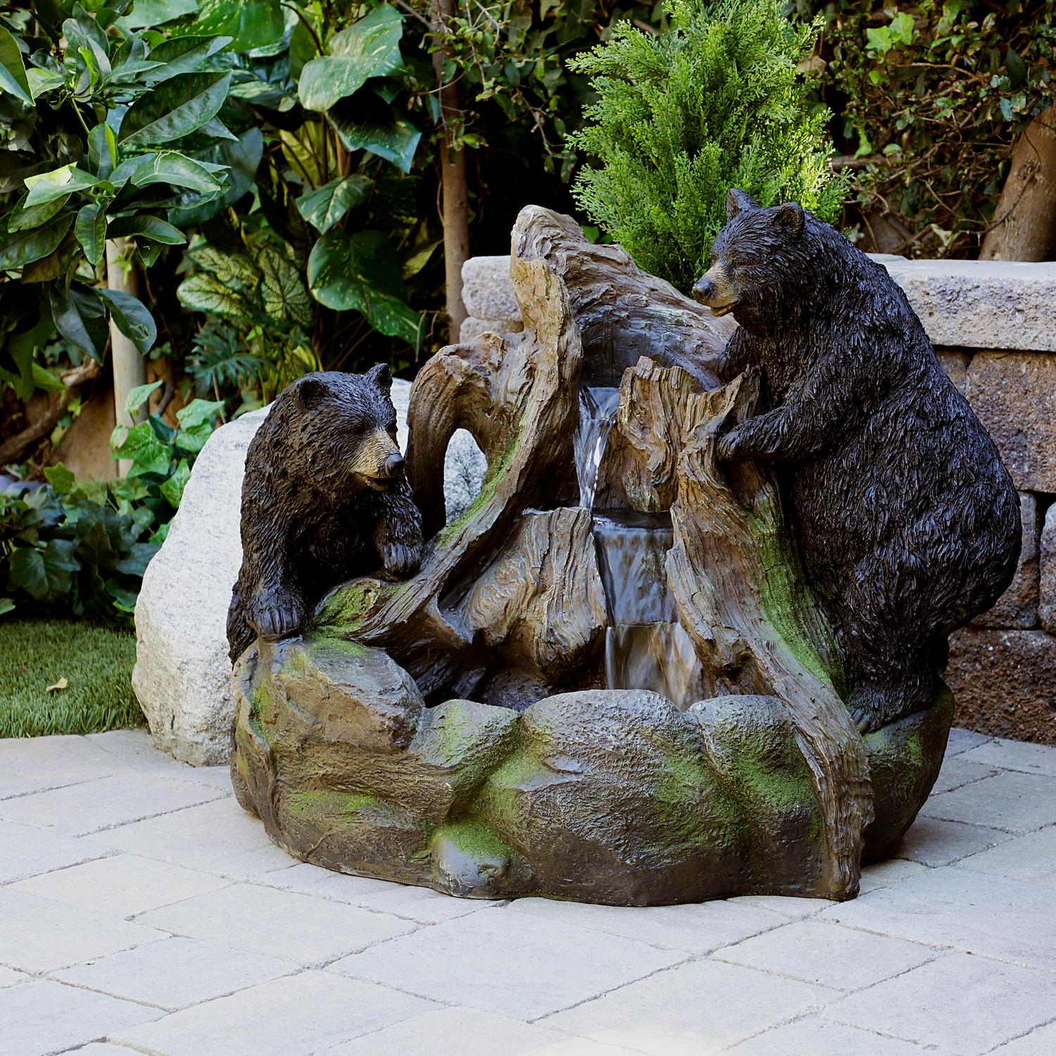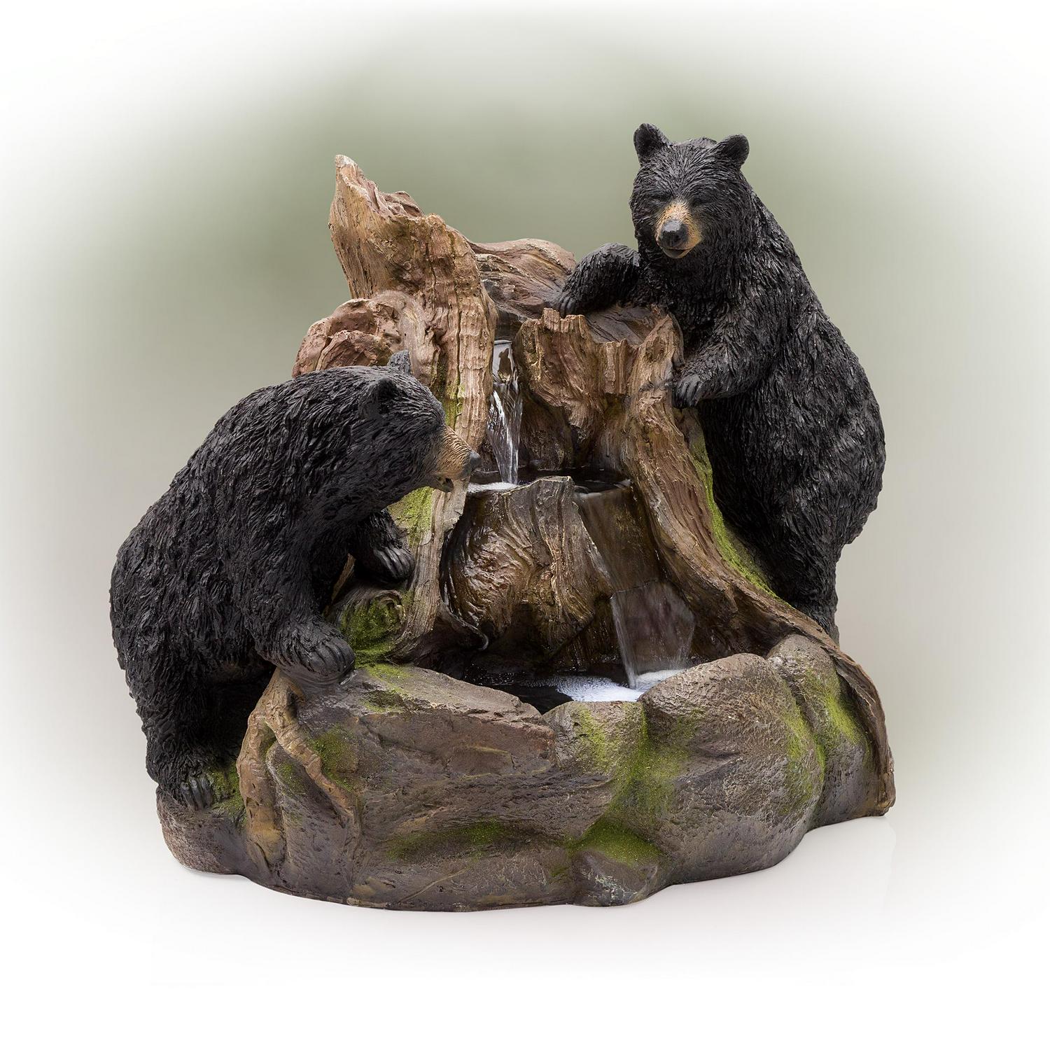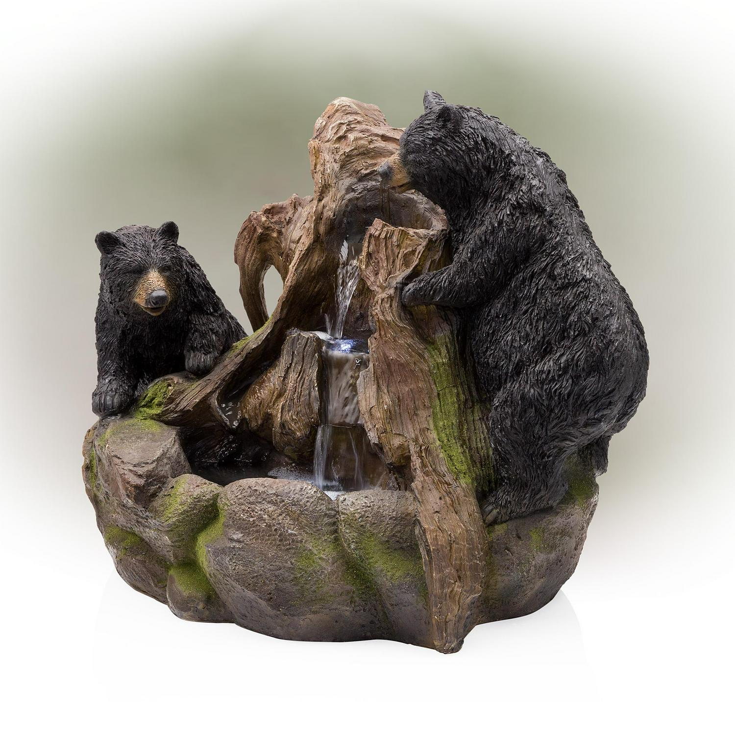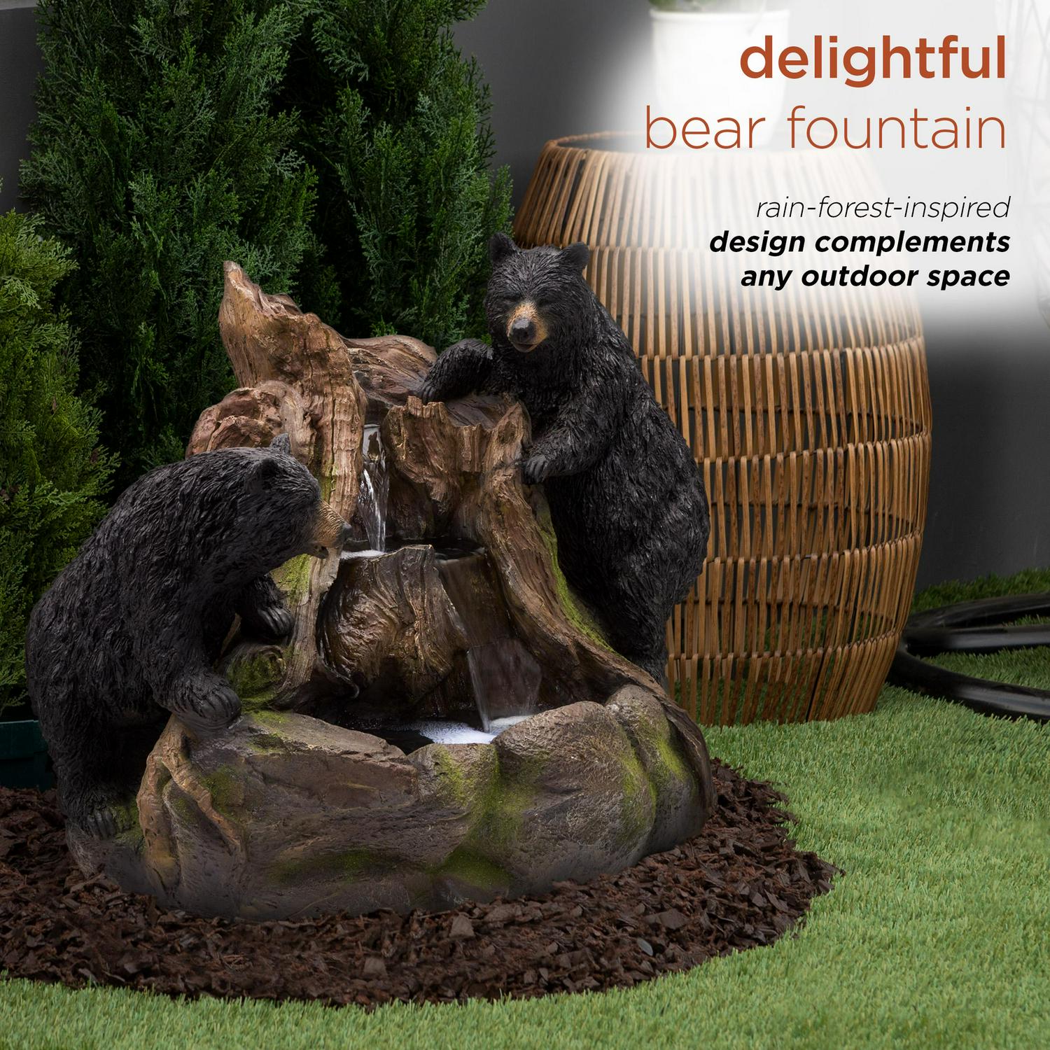 Bears Climbing a Rock Waterfall Fountain w/ LED Light:Dimensions: 31L x 20″W x 24″H.Made of stone powder and polyresin.Playful fountain of mother bear and cub climbing a waterfall that makes you feel like you are in the great outdoors.Made of durable materials that will perfect your home