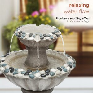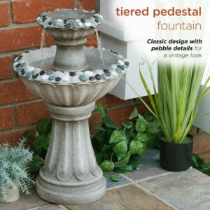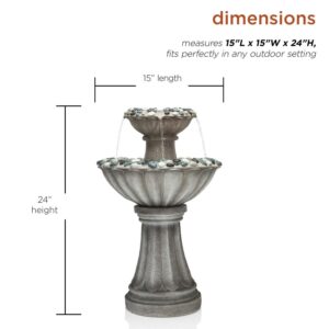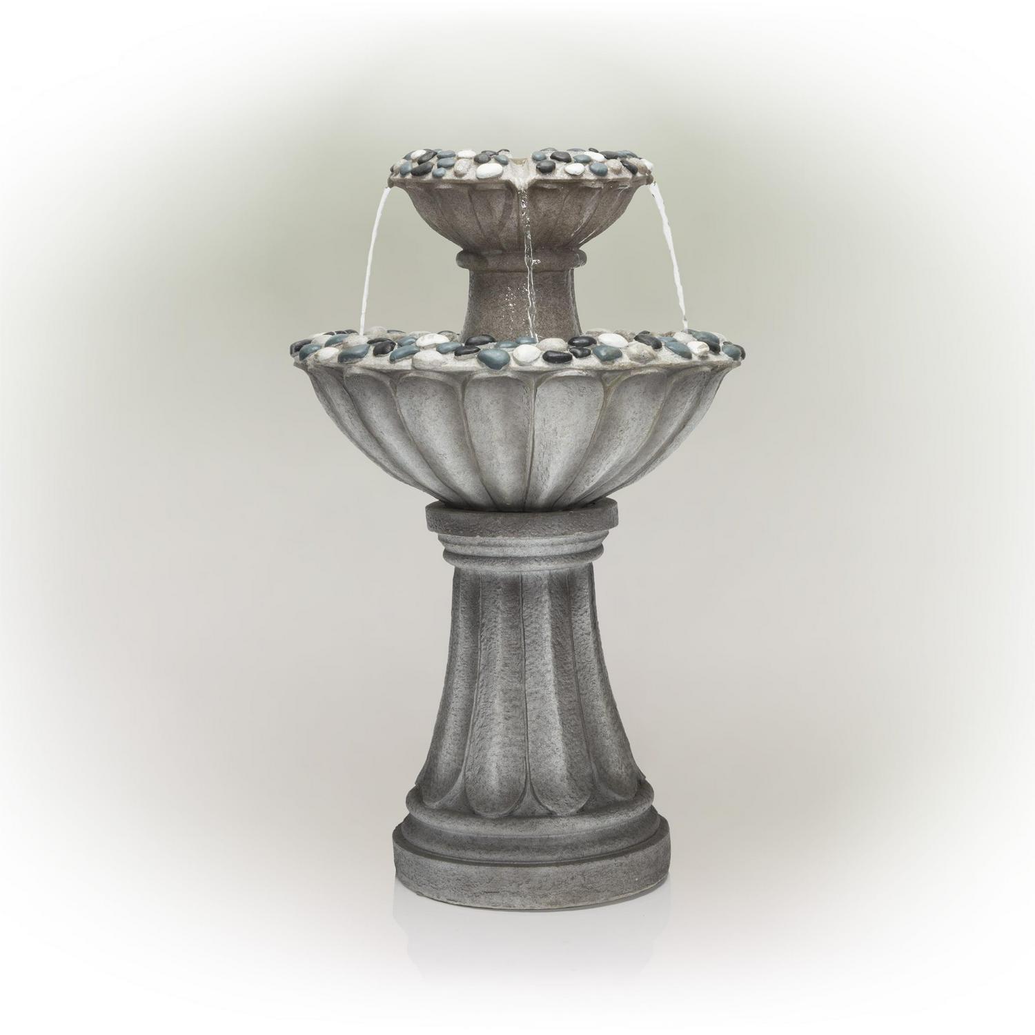 Alpine Corporation Grey Two Tier Pedestal Fountain, 24 Inch Tall