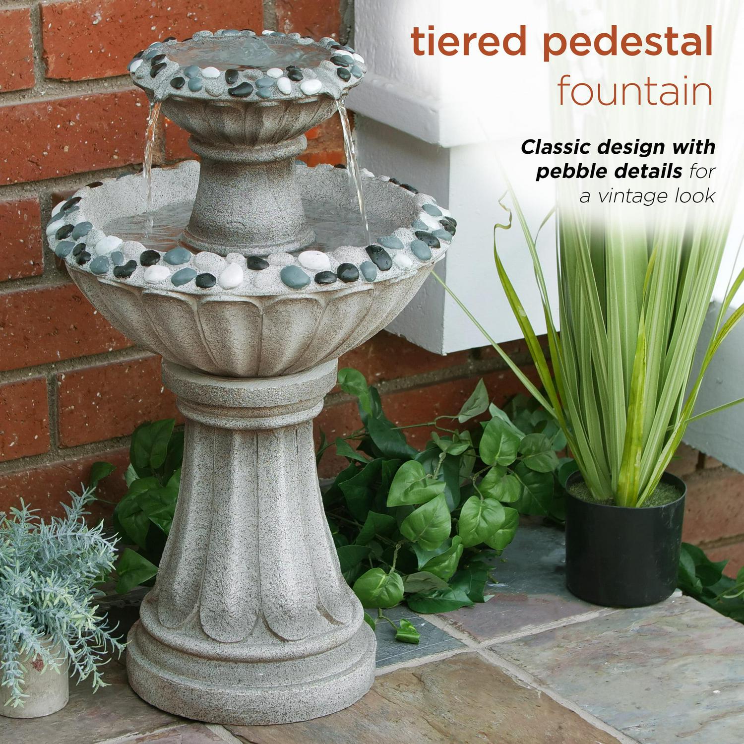 Add classic charm and elegance to your garden, patio or yard with this beautiful traditional water fountain by Alpine. This classic and timeless fountain will be the centerpiece of your formal garden or courtyard as the soothing water sounds surrounds the atmosphere while you sit around with your loved ones. Be the envy of everyone with this classic water fountain by Alpine.