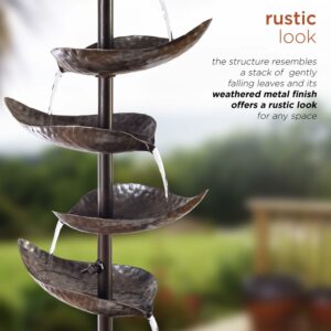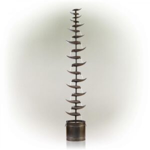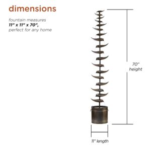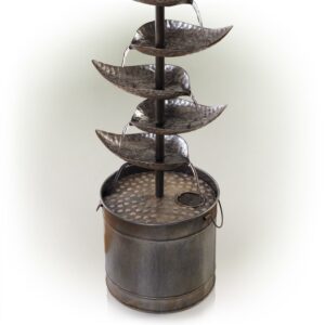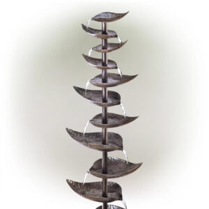 Bring calming ambiance to your space with the Alpine Corporation Hanging Leaf Tiered Floor Fountain. Set the mood for meditation or romance with this remarkable 19-tier fountain. As water cascades from one cup to the next, it makes soft sounds to help you relax. The fountain is made of durable iron with a silver finish to provide an attractive rustic look to your yard. To use, simply plug in to an outlet, fill lower basin with water, and watch as the interior pump creates a lovely water flow. With a 1-year warranty, you can be confident in the quality of your purchase. Fountain measures 11″L x 11″W x 70″H for a perfect fit in your yard, entryway, garden, patio, and more.