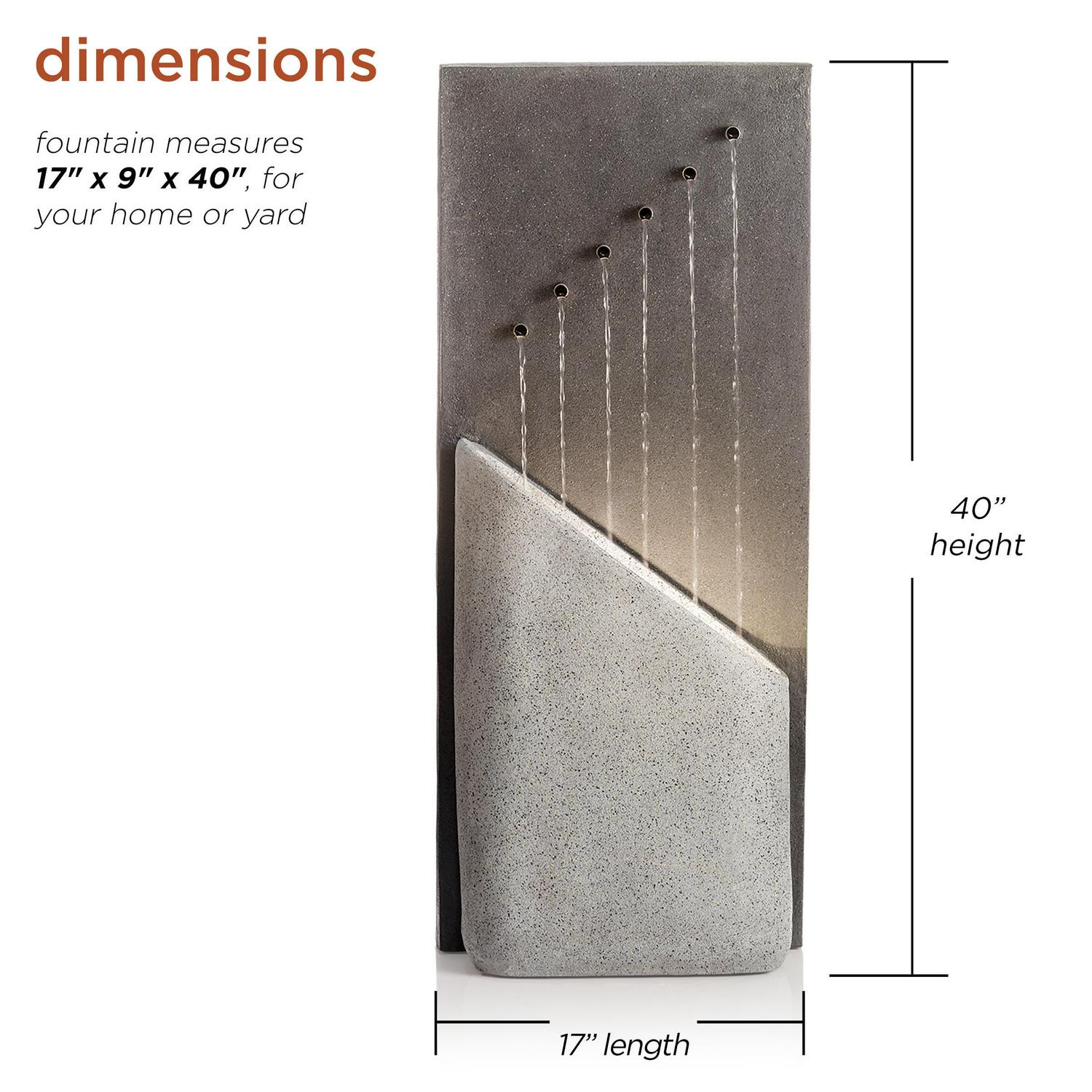- Fountain statue measures 17″L x 9″W x 40″H, the perfect size for your yard