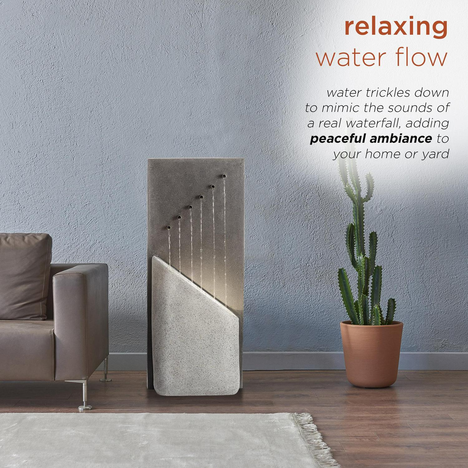 – Water trickles down to mimic the sounds of a real waterfall, adding peaceful ambiance to your home or yard