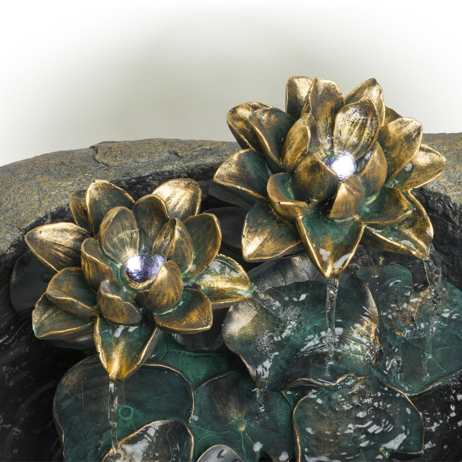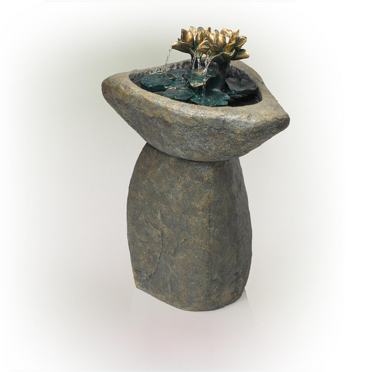 Alpine Corporation Lotus Rock Fountain Waterfall with LED Lights