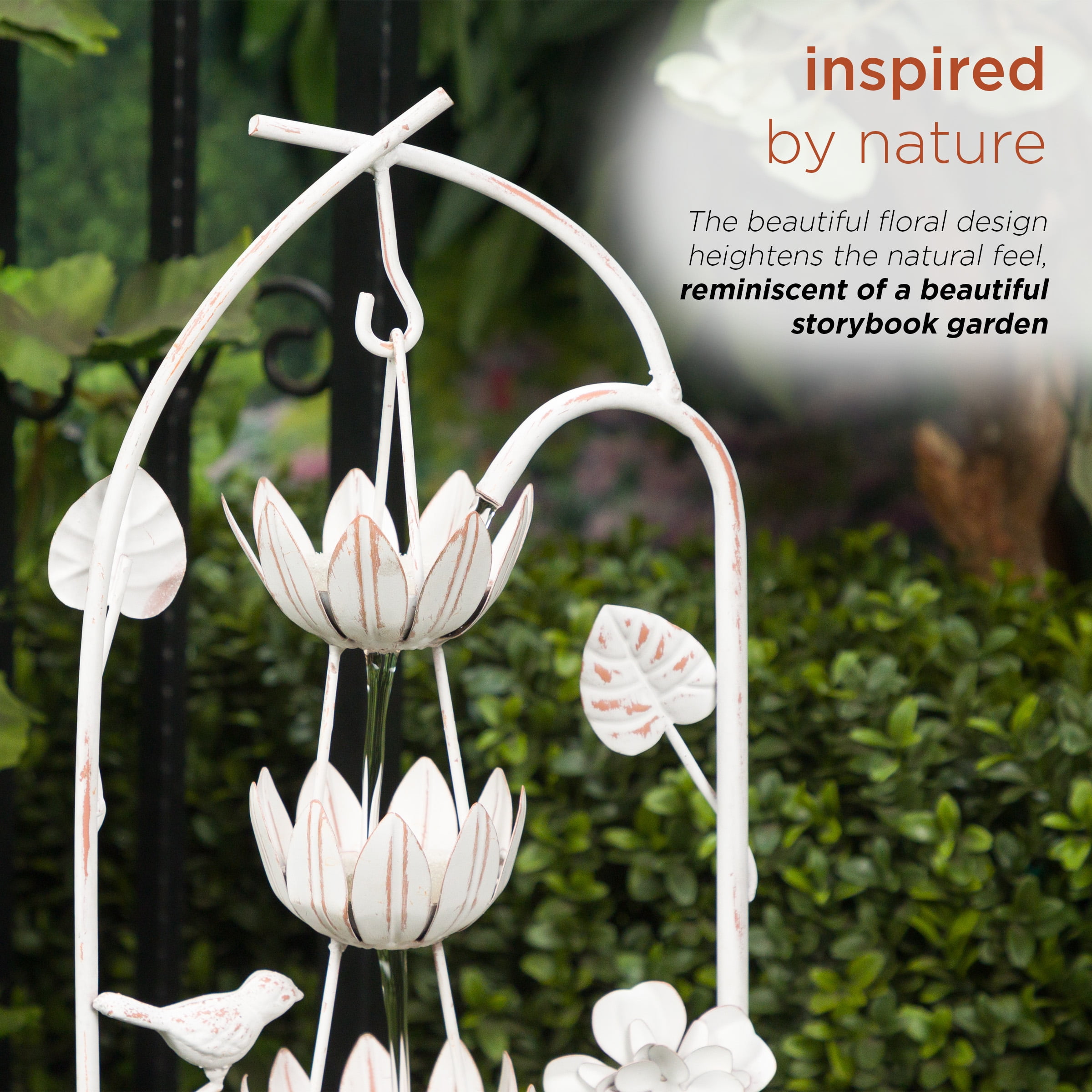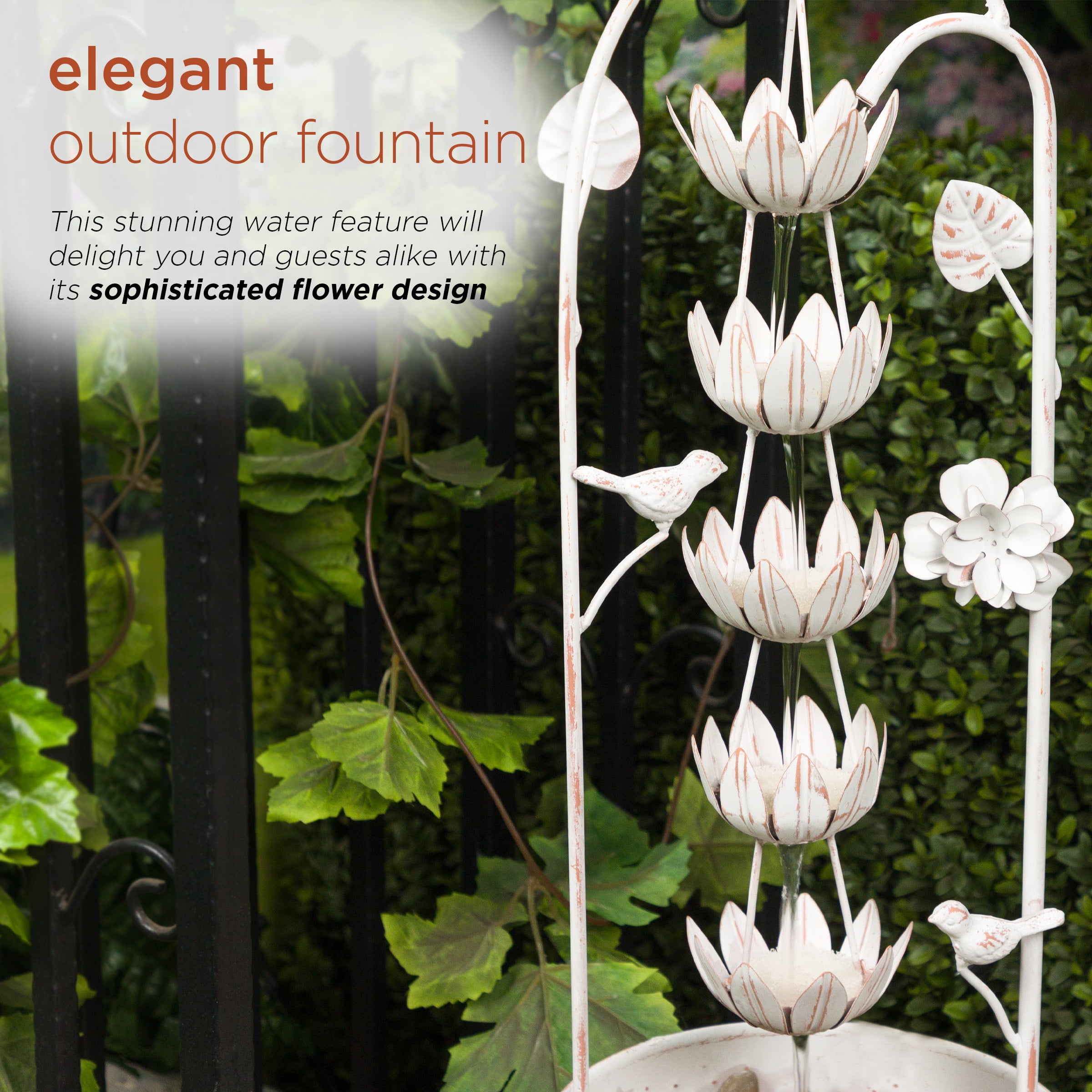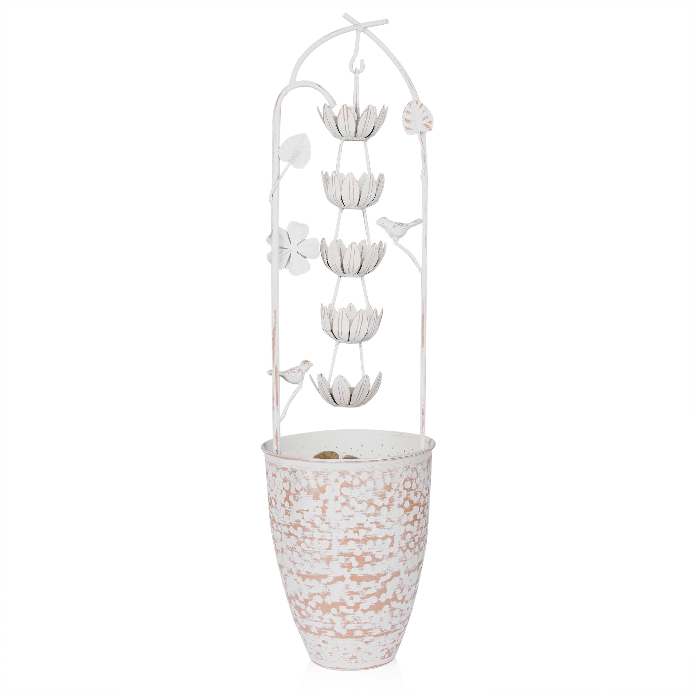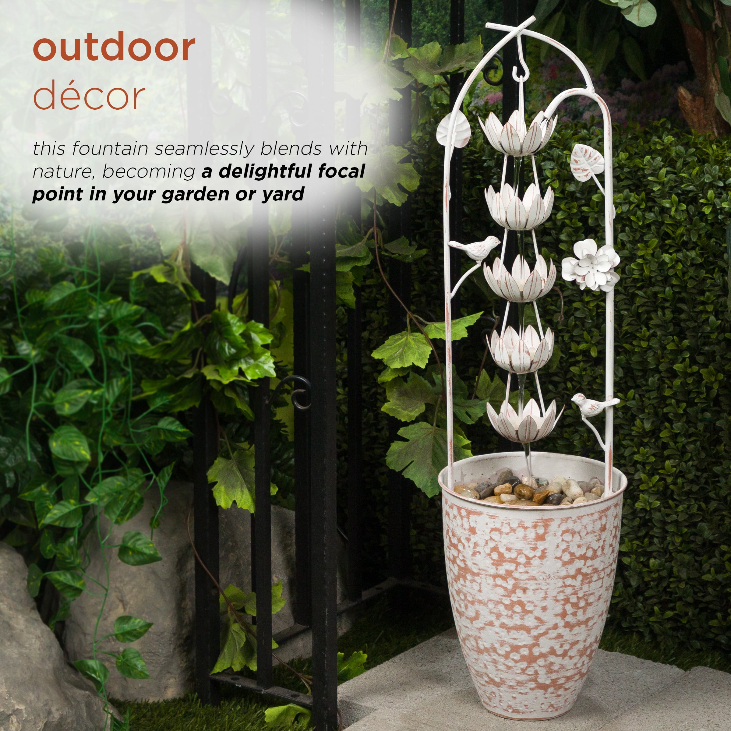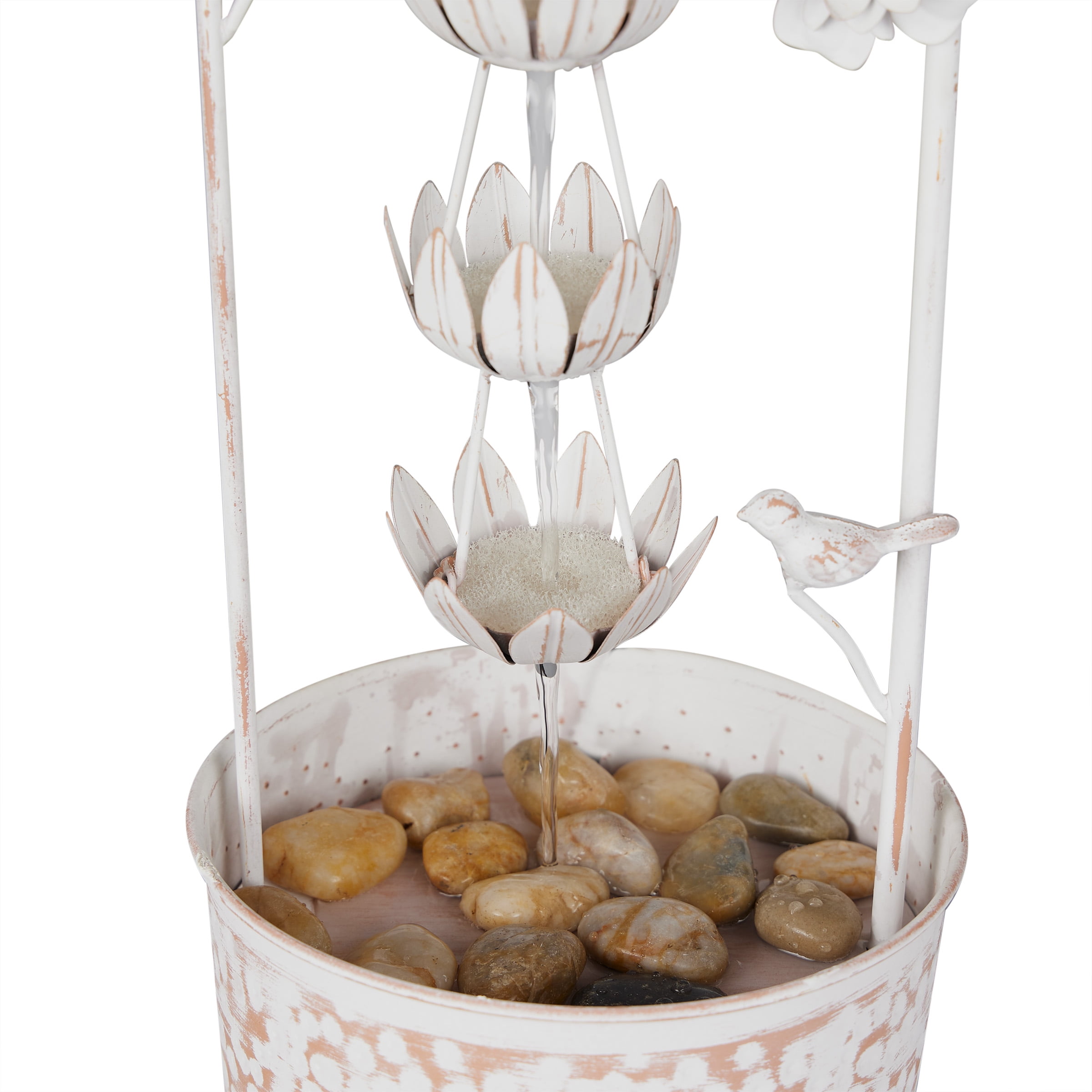 Alpine Corporation Metal White Rustic Outdoor Electric Fountain with Flower