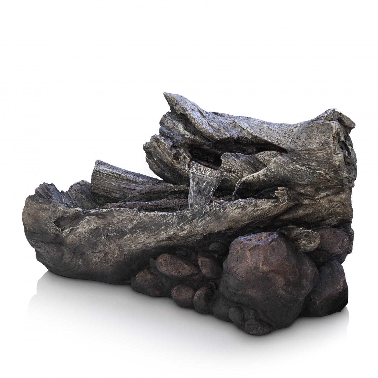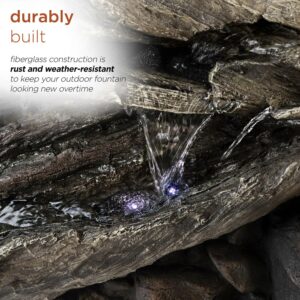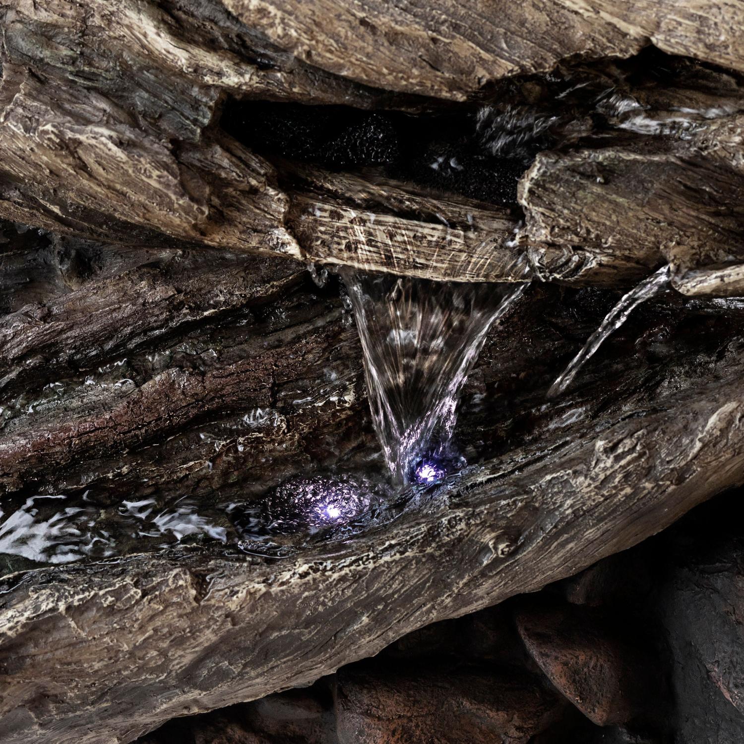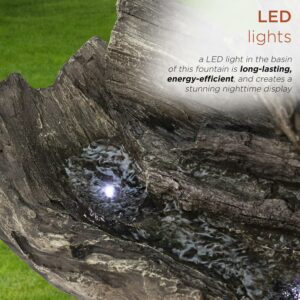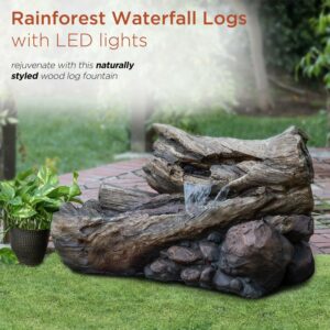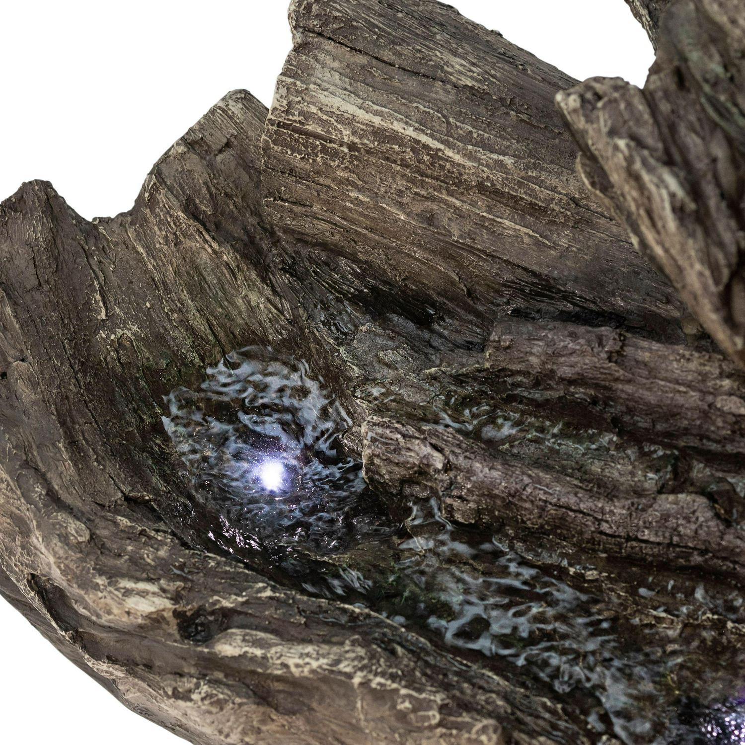 Alpine Corporation Outdoor 3-Tier Fallen Tree Trunk Water Fountain with LED Lights