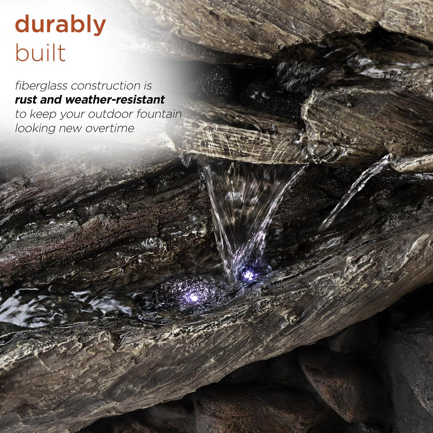 – Fiberglass construction is rust and weather-resistant to keep your outdoor fountain looking new overtime