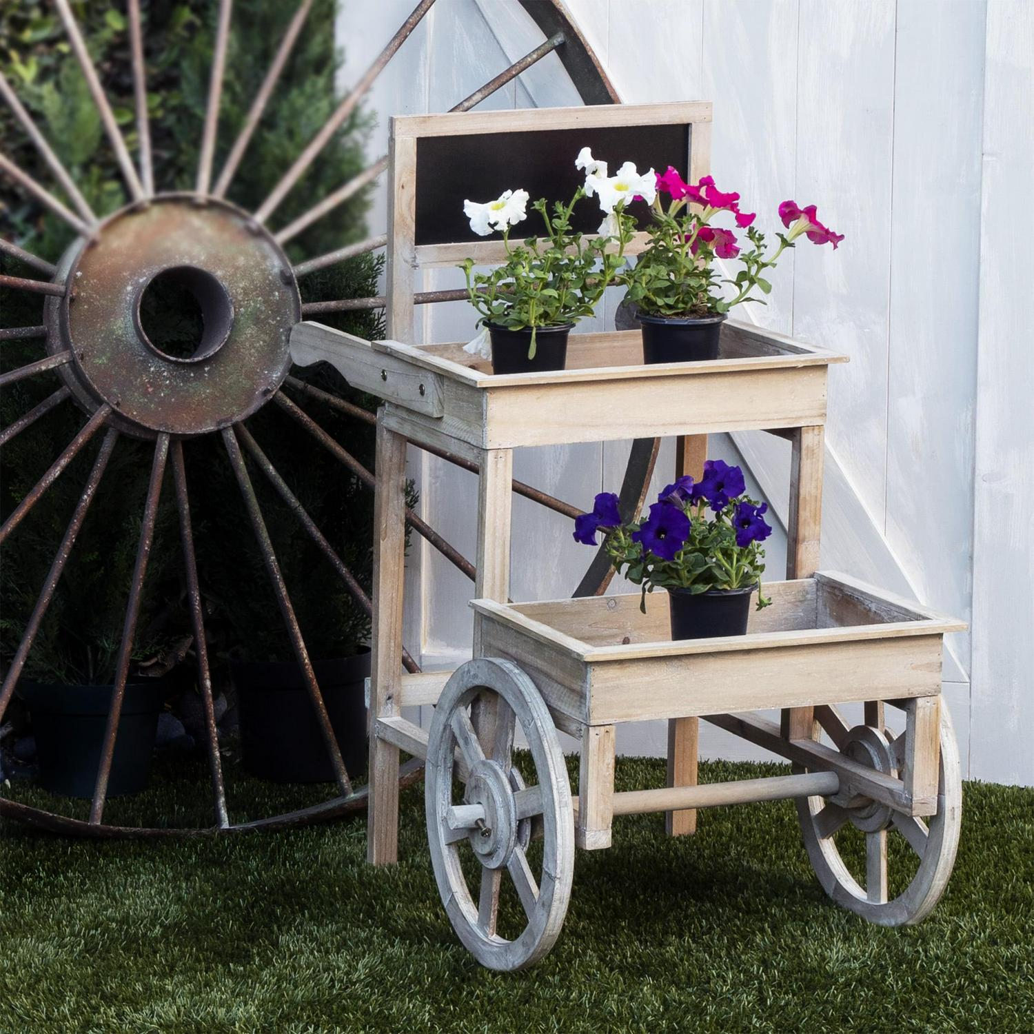 - Cart design is ideal for displaying your favorite plants indoors or outdoors