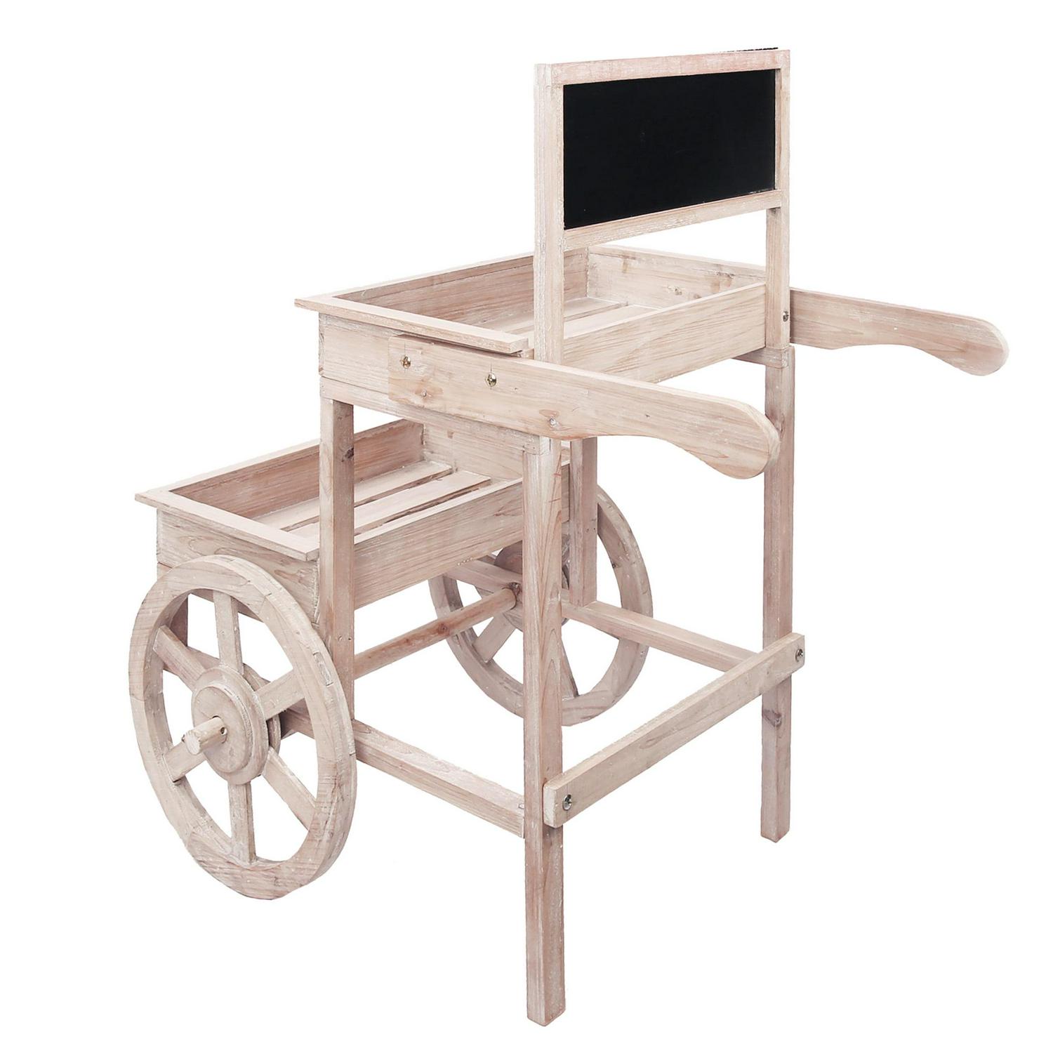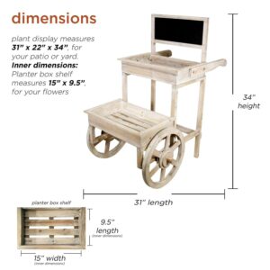 - Wooden Cart measures 31″L x 22″W x 34″H, perfect for your yard or home
