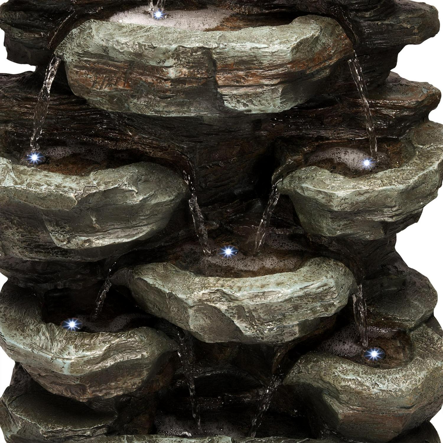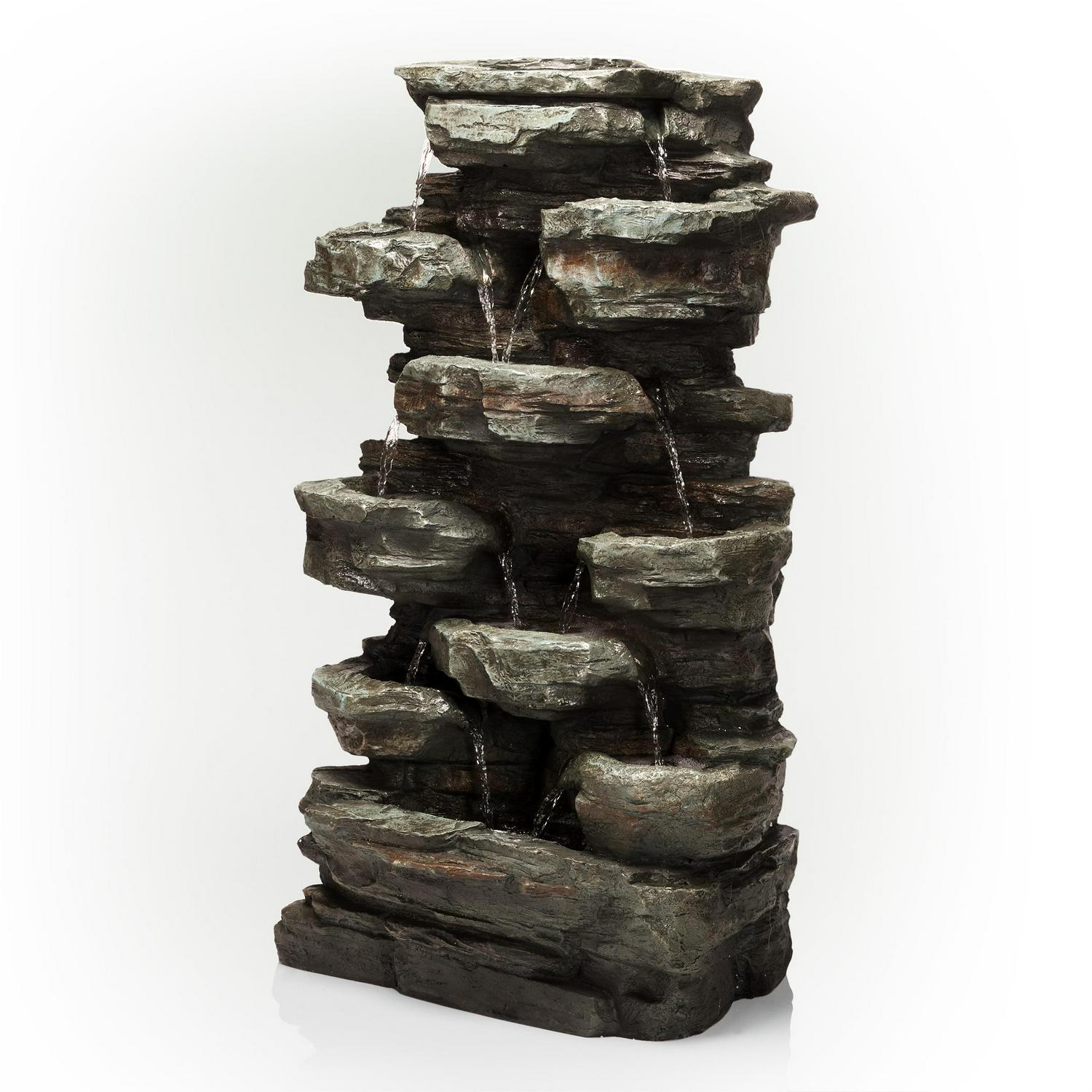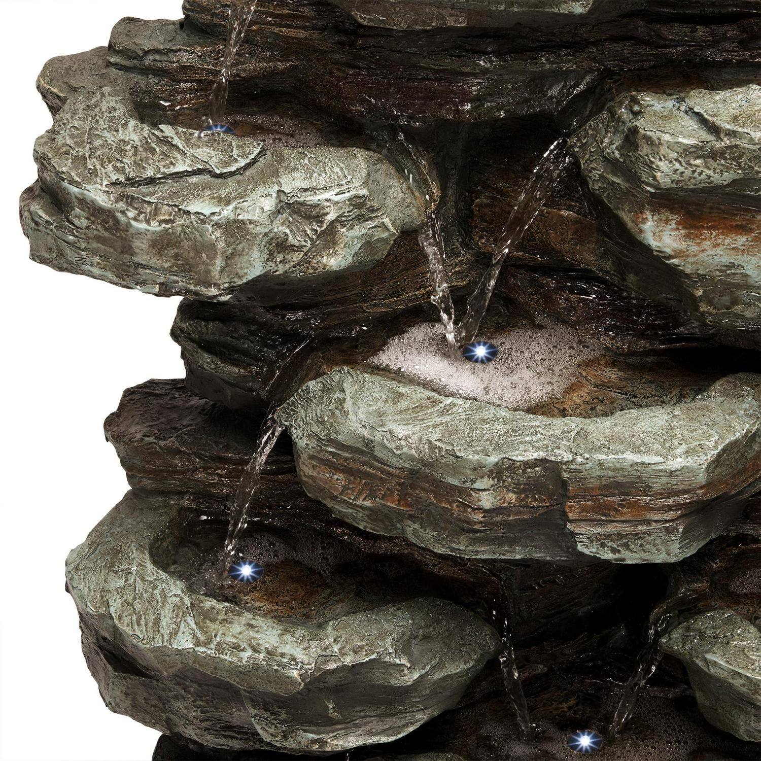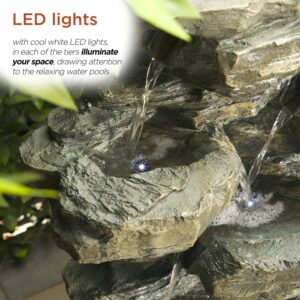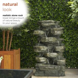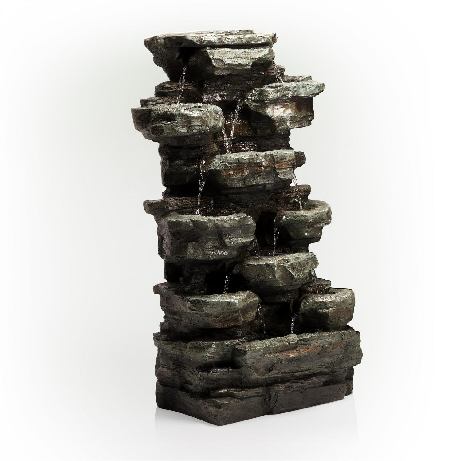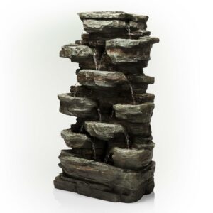 Alpine Corporation Tiered Cascading Rock Fountain with LED Lights, 39 inch Tall