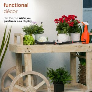 Alpine Corporation Wooden Garden Cart Display with Wheels