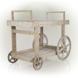 Add a creative touch to your home with Alpine Corporation’s Wooden Garden Cart Display with Wheels. Skillfully crafted to be durable, this car will turn any space into an eye-catching atmosphere while giving it a natural look. Place this cart in your indoor or outdoor space for an immediate upgrade. Constructed of durable, weather-resistant iron and Chinese fir that is built to provide long lasting use. Make a statement with Alpine and enjoy a line of products that will make your home and patio eye-catching and attractive. Measuring 44″ x 26″ x 37″, the Alpine Corporation Wooden Garden Cart Display with Wheels is perfect for your home.