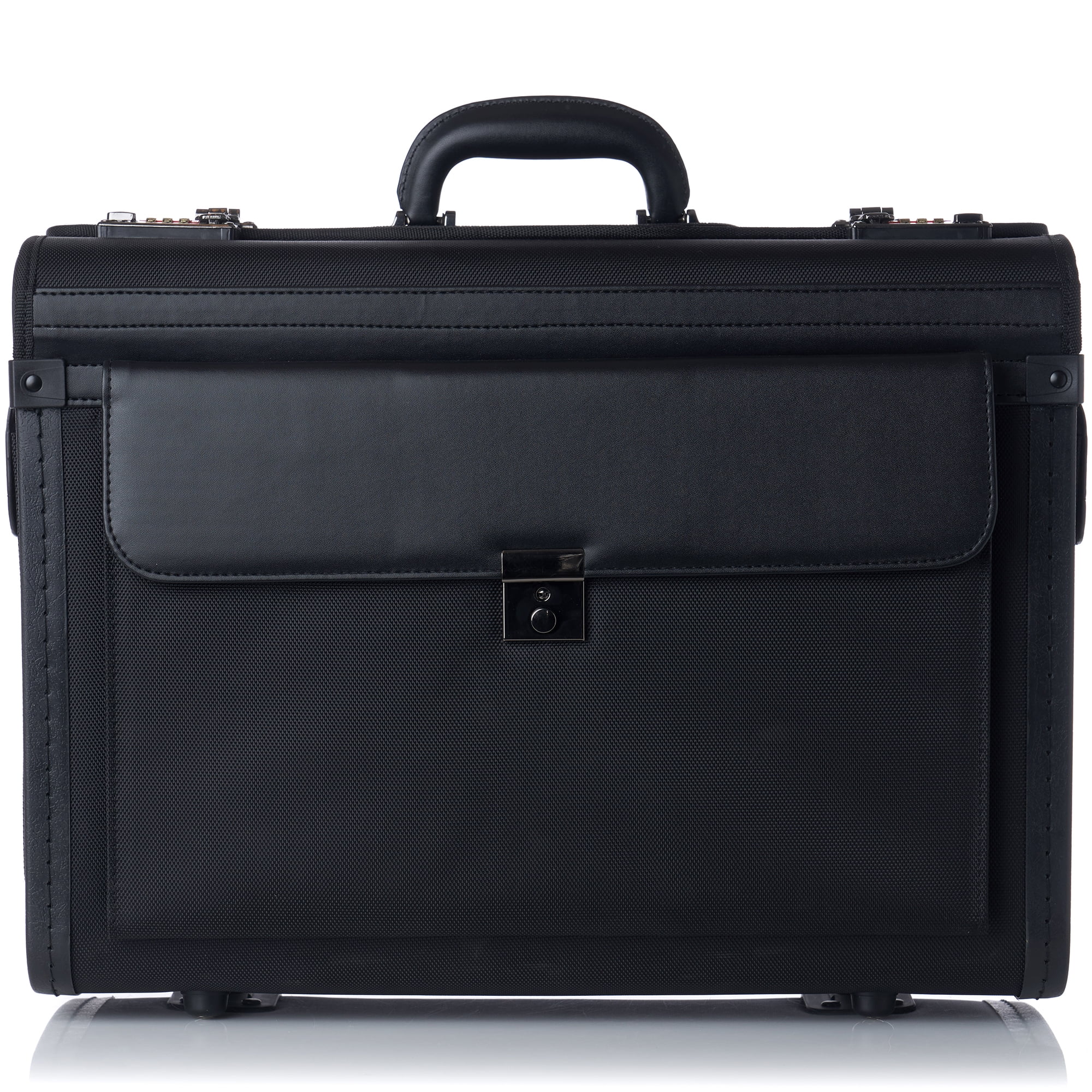 FREE SHIPPING Rolling 17” Laptop Catalog Case By Alpine Swiss Product Features: 1680 Ballistic Nylon & Leatherette TSA APPROVED CARRY ON SIZE – Measures 19″ x 14″ x 9″ TSA approved carry-on size for all carriers. Interior measurements 17″ x 13 1/4″ x 7 1/2″ LAPTOP SLEEVE – Main compartment features a divided folder and a padded laptop sleeve with secure elastic strap that fits up to 17” laptop. SPACIOUS, ORGANIZED, SECURE – Main section flap-over comes with organizer that includes a card slot, two pen slots, and a small zipper pocket that measures 8” x 3” x 1.5”. Closure has secure dual combination locks can be individually set. Front pocket expands 2 inches and has a key lock. Side pockets each measure 6” x 1 3/8” x 9”. Spacious enough for A4 and legal sized documents. DURABLE CONSTRUCTION – Built with a sturdy hard sided frame, riveted attachments for all components like the telescopic rolling handle, carrying top handle, and smooth in-line skate wheels. Constructed with quality 1680 ballistic nylon and leatherette trim that is both practical and sophisticated. WARRANTY – Comes with a 1-year Alpine Swiss manufacturer’s warranty against defects so you can make your purchase with confidence. MSRP $175.00