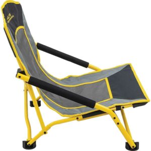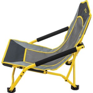 – Folding chair with arms sits low to the ground
