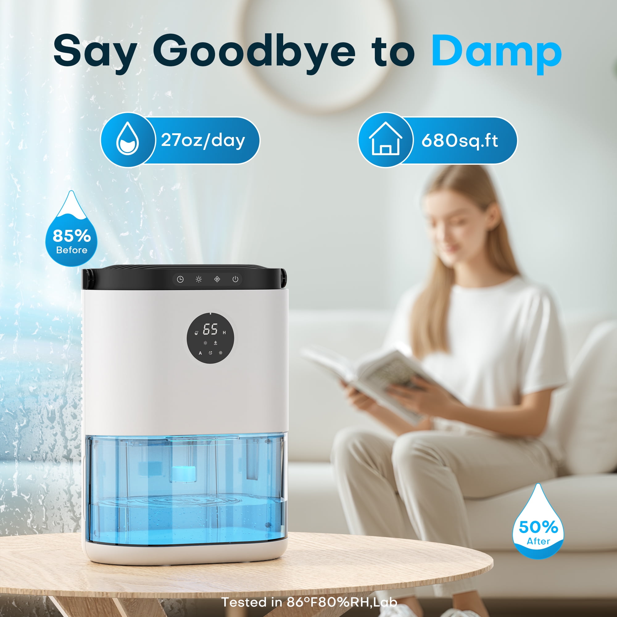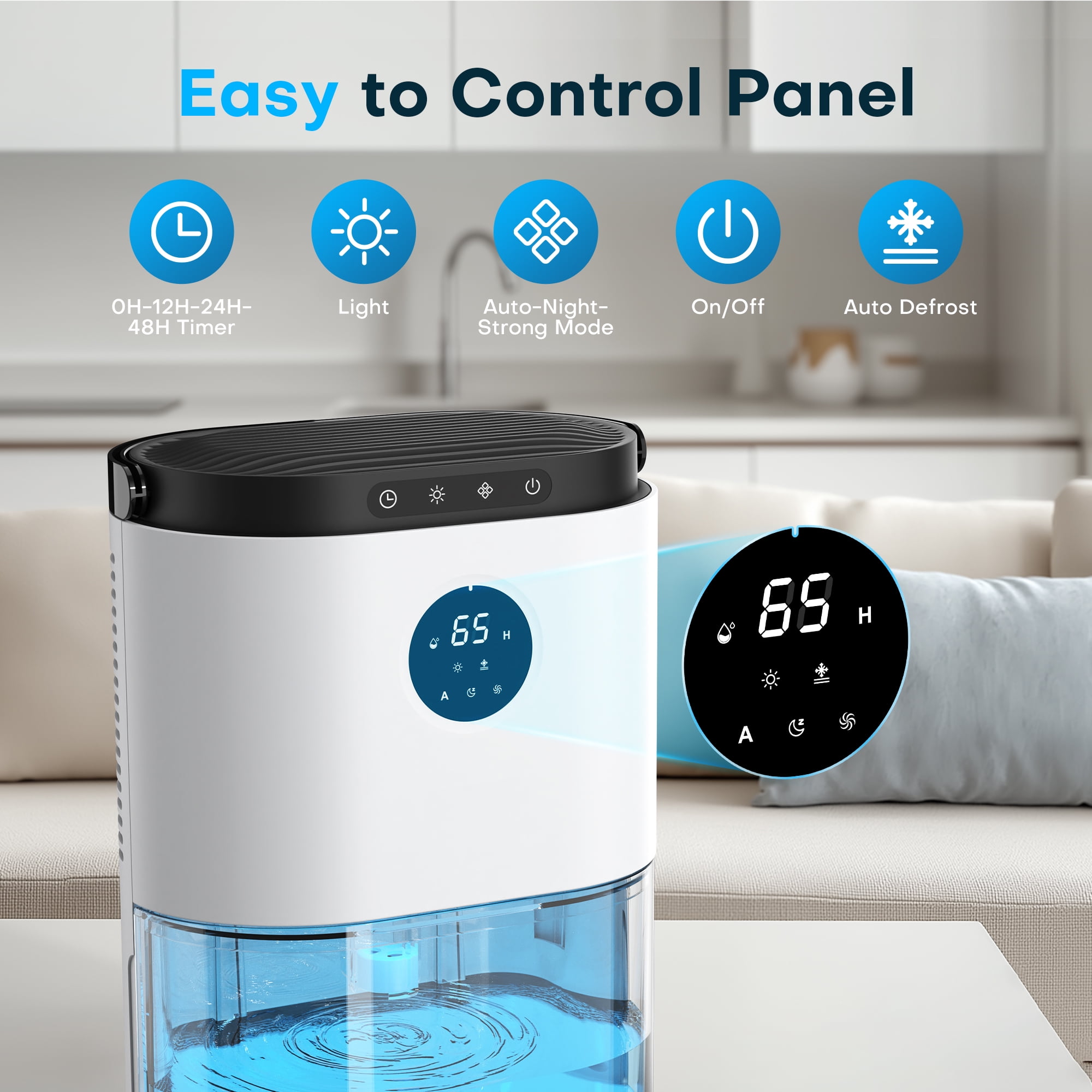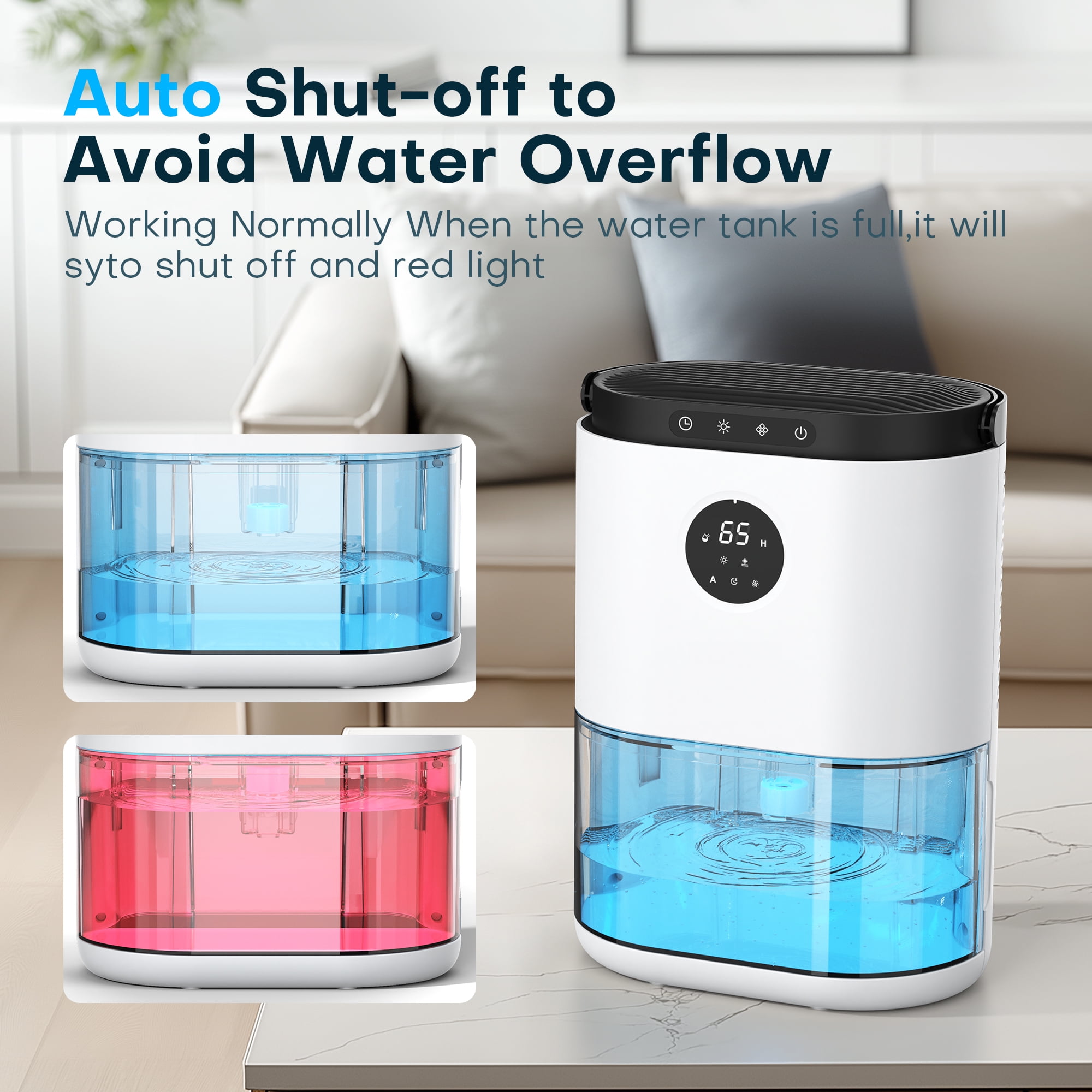 ALROCKET Dehumidifier Portable and Ultra Quiet 77.5oz Small Dehumidifier 2300ml for Home 4500 Cubic Feet 680 sq ft with Humidity Display and Automatic Shut-off for Bedroom Basements Bathroom Closet RV Feature Extracts up to 27oz 800ml of water per day Auto Defrost Dehumidifier Double Power Dehumidifier Large 77.5oz ounce capacity water tank Auto-Off and LED indicator when full Energy efficient with low power consumption Ultra-Quiet Peltier Technology (Thermo-electric cooling) 8H/12H/36H/48H Timer and sleep mode Compact, portable and lightweight Ideal for home, office or caravan Home Appliances Best Choice Healthy Enviroment Happy Life When water tank is full, Easy to take out & Cleaning High Quality Products Customer-Focused Brand Package includes: 1x dehumidifier + 1x user manual. -Specification- Built-in Handle: YES. Touching Control: YES Built-in Plug: YES. Power Supply: AC Size: 8.8*6.0*12.3 INCH Capacity of Water Tank: 78 OZ/2.3L Max Absorption: 27 OZ/800ML Working Temp: 59~104℉ (15°C~40°C). Not suitable for the temp below 47℉/8℃. -Tips- The dehumidifier works better in closed space. Do not block air input/output. The higher humidity, the better absorption.