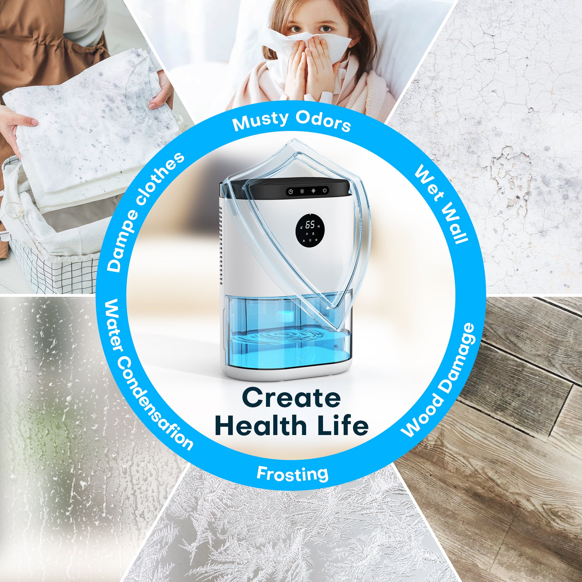 ALROCKET dehumidifier-what can it do for you?Faster and Efficient Dehumidification. Using double semiconductors, it can quickly remove up to 800ml of water at 86℉ (30°C) ,80% RH daily.Remove the unpleasant odor, dissipate sultry air, keep your bedroom, bathroom, basement, and garage air fresh. It is not only a small dehumidifier for home, but also a portable dehumidifier for RV.Effectively remove excess water in the air, improving the air quality, especially after a bath or shower. Keep the environment dry and comfortable.Control pleasant room humidity and protect your health. The most suitable humidity for people is 50-60%.The ultra-quiet Sleep Mode of this dehumidifier is perfect for the bedroom and night. Less than 35dB, just feel like in a quiet wonderland!This large dehumidifier supports setting a timer (max 48Hours)to turn off the dehumidifier.The Auto Defrost could prevent getting stuck by the low temperatures, keeps the dehumidifier working smoothly for you.Turn on the built-in 7 colors nightlight to decorate your wonderful night, also supports breathing light mode and lock colo mode.