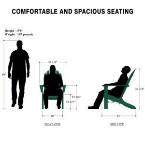 – The classic and versatile appearance of Adirondack chair is perfectly integrated with other furniture on the outdoor space, such as fire pit, patio, front porch, balcony, pool side, deck, backyard, lawn, or garden; Easily to fit a variety of living space styles and settings. The perfect companion for chaise lounge, rocking chair, foot stool, and more outdoor patio furniture