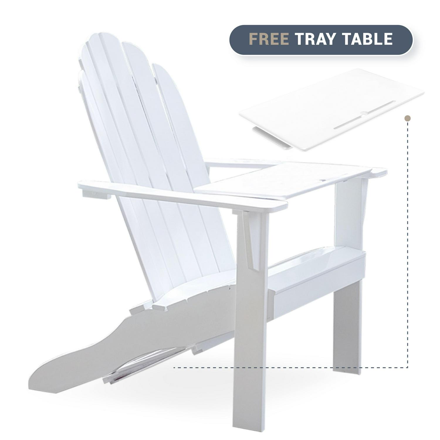 Alston Solid Wood Outdoor Adirondack Chair – Free Tray Table – White