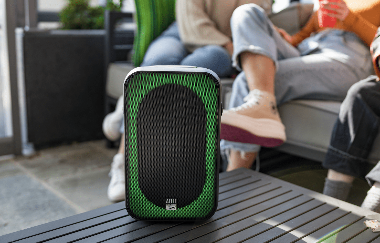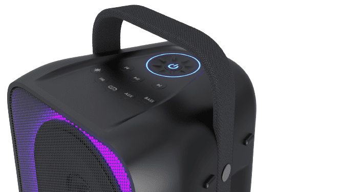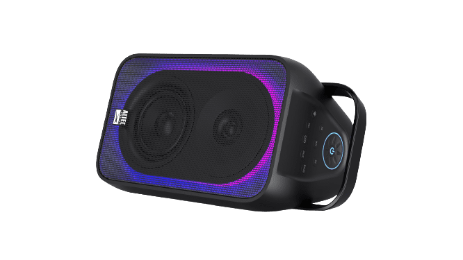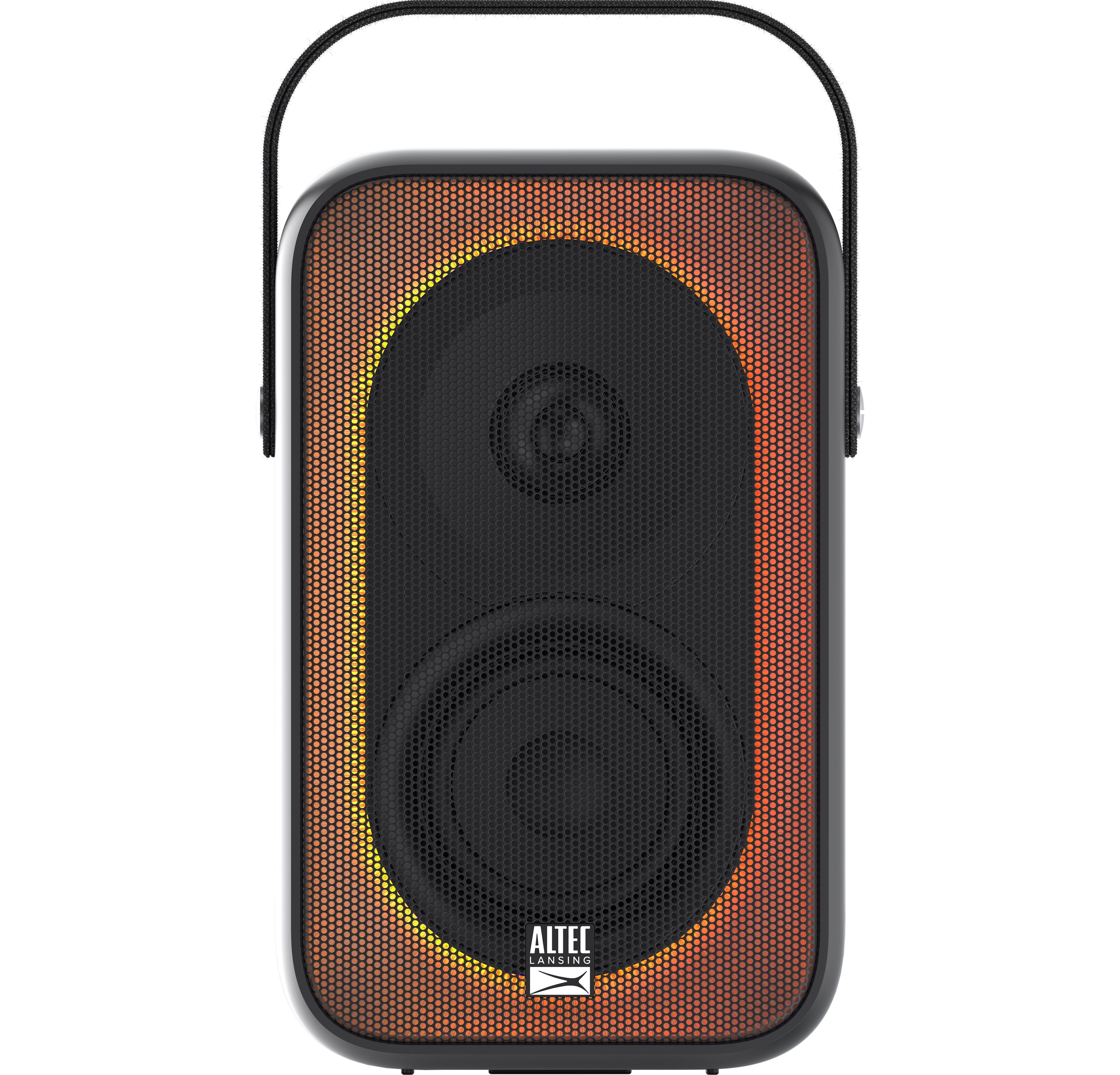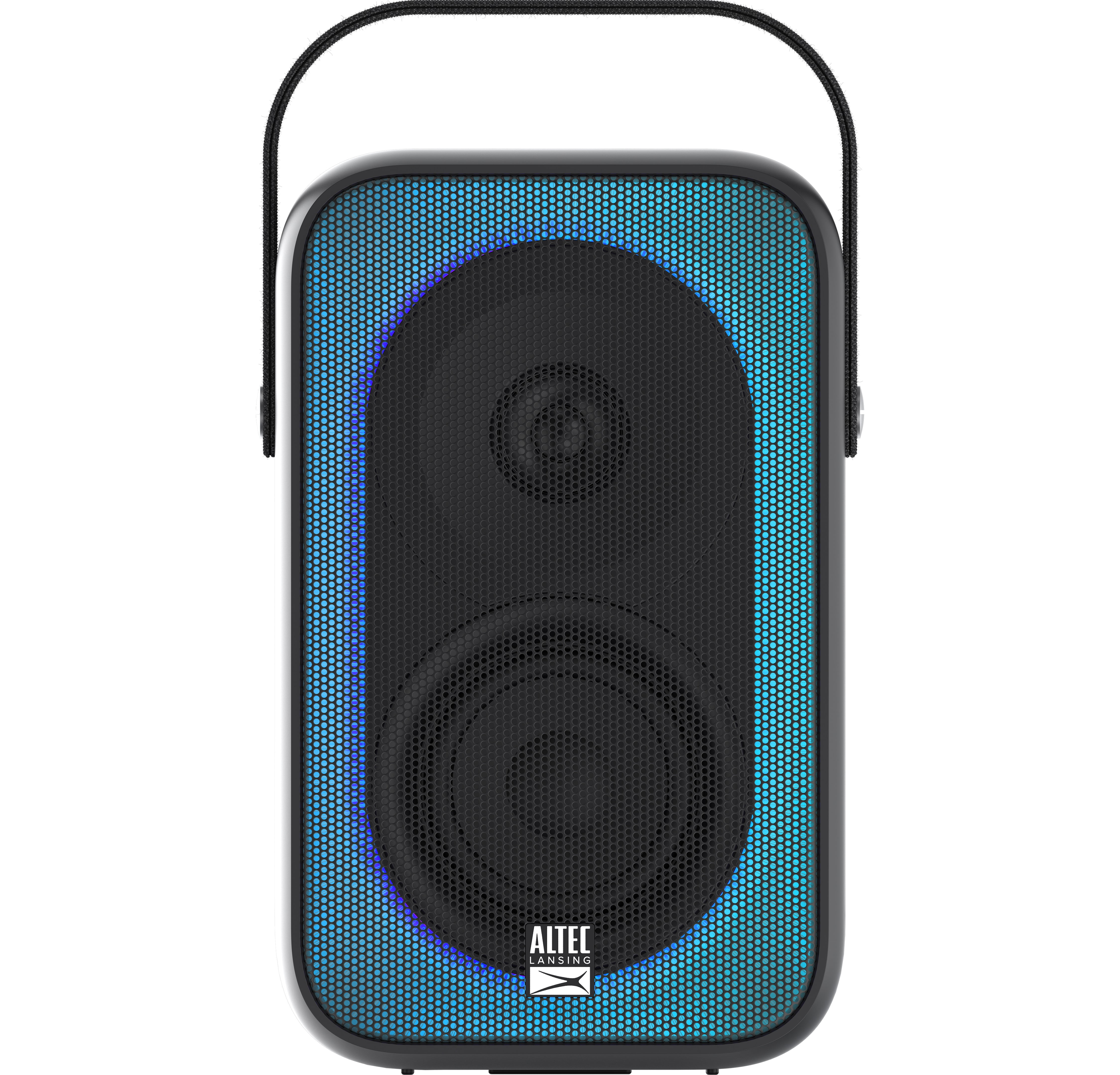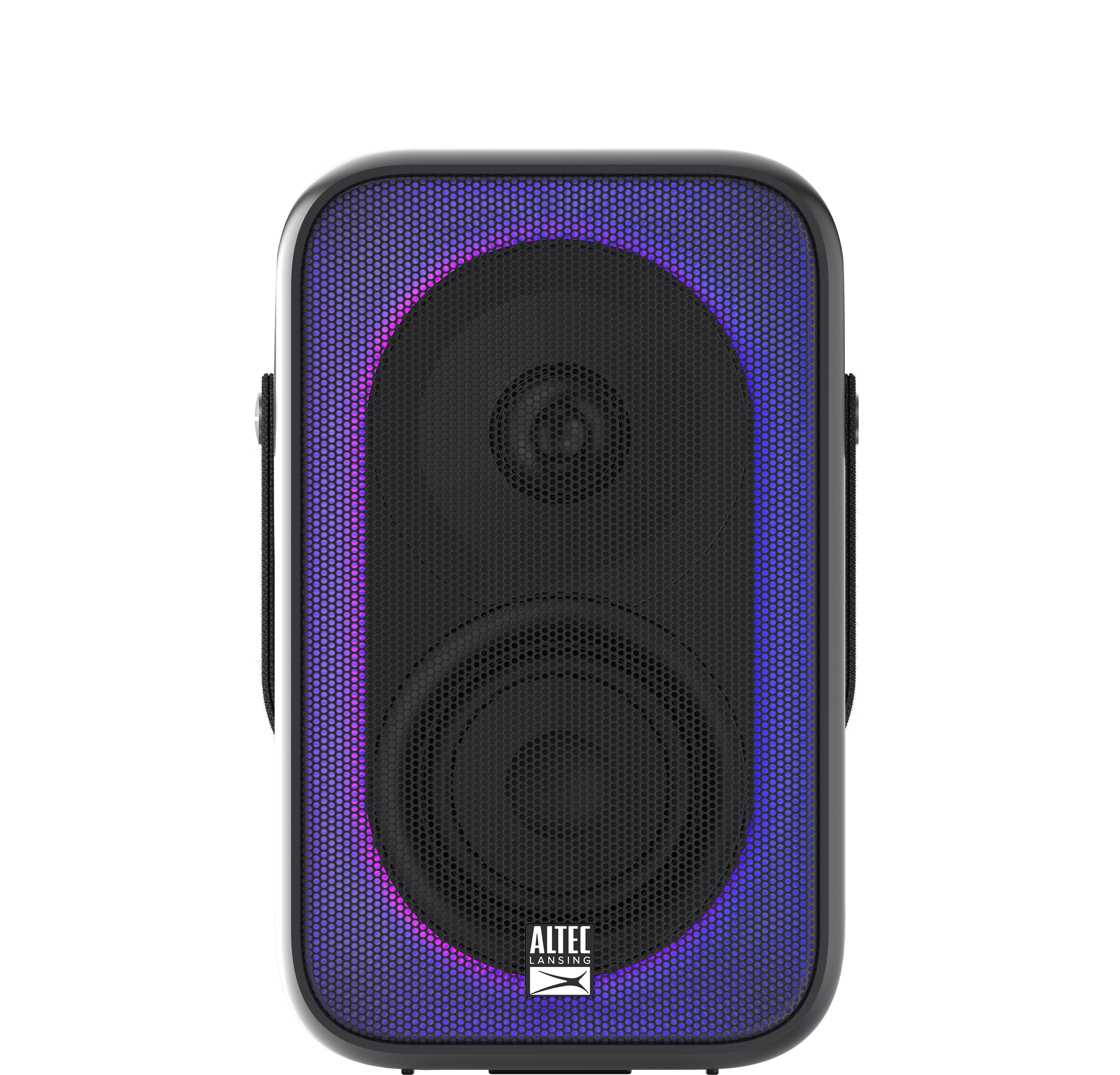 Altec Lansing Shockwave Portable Bluetooth Wireless Party Speaker 60W of Peak Power IP65 Water Resistant & Dustproof The power to party anywhere: 6 hours on Bluetooth Multiple Bass Modes Party Sync Mode : Pair up to 50 speakers together for bass boosting sound Multi-color LED Light Modes: 9 LED light modes beat, strobe and pulse to the music Carrying strap – take your tunes on the go!
