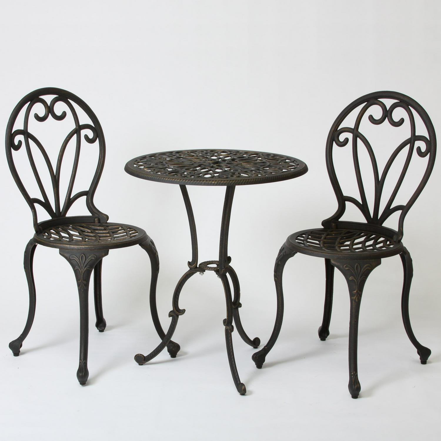 Aluminum 3-Piece Outdoor Bistro Set, Black and Gold