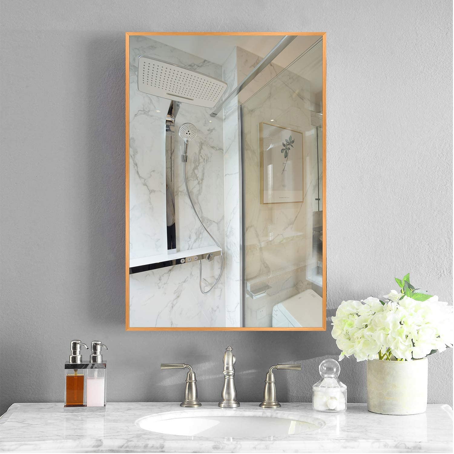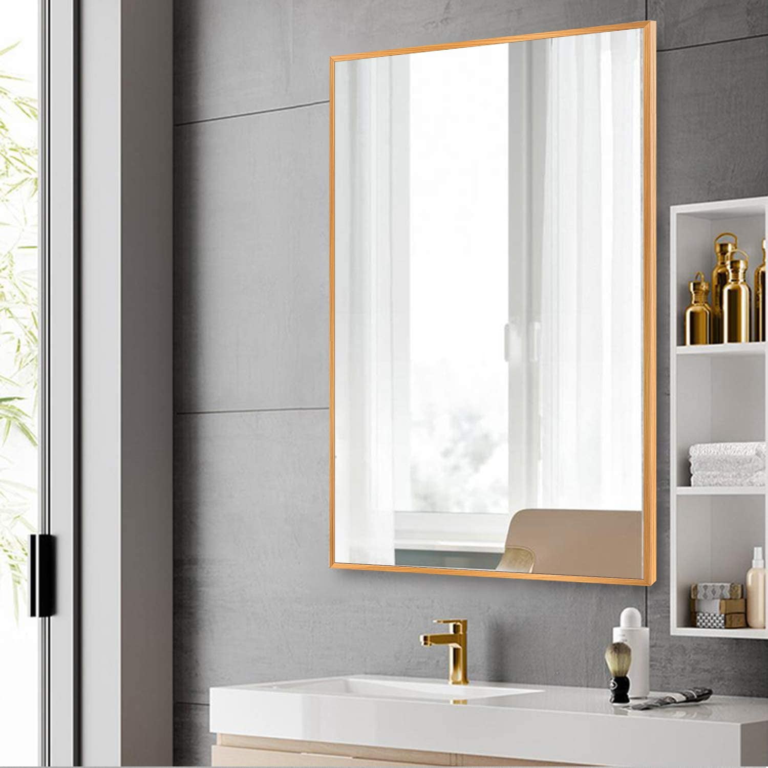 Aluminum Alloy Frame Wall Mirror Bathroom Mirror Rectangular Vanity Mirror for Bathroom Living Room Gold 38″ x 26″