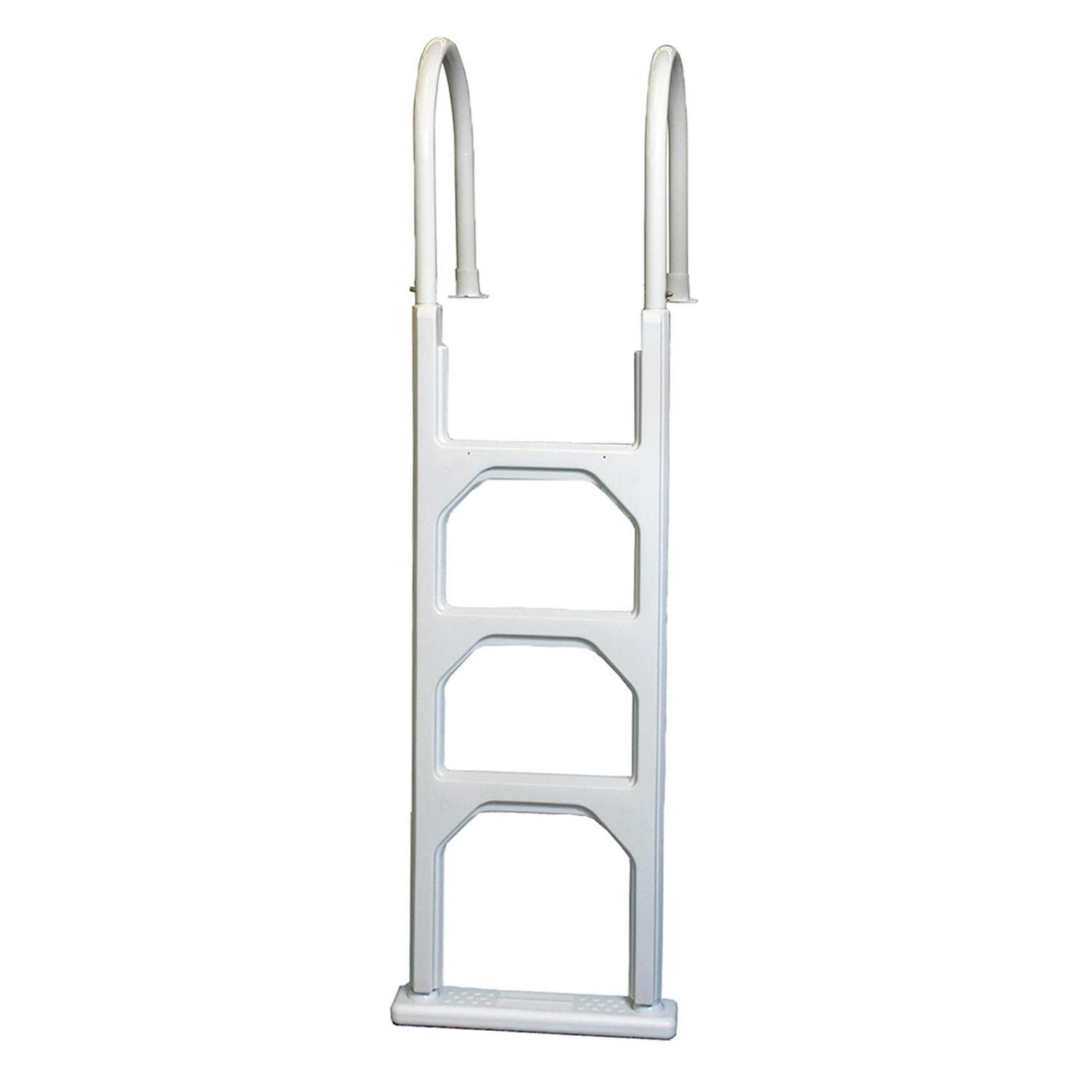 Exit your pool safe and secure with this non-corroding aluminum and polymer ladder. Accommodates up to 225 lbs. These above ground ladders will fit up to 54-in deep pools and come complete with deck flanges. The base of the ladder pivots to conform to sloping pool bottoms for safe grounding. Install this rugged in-pool ladder this season at this great price.