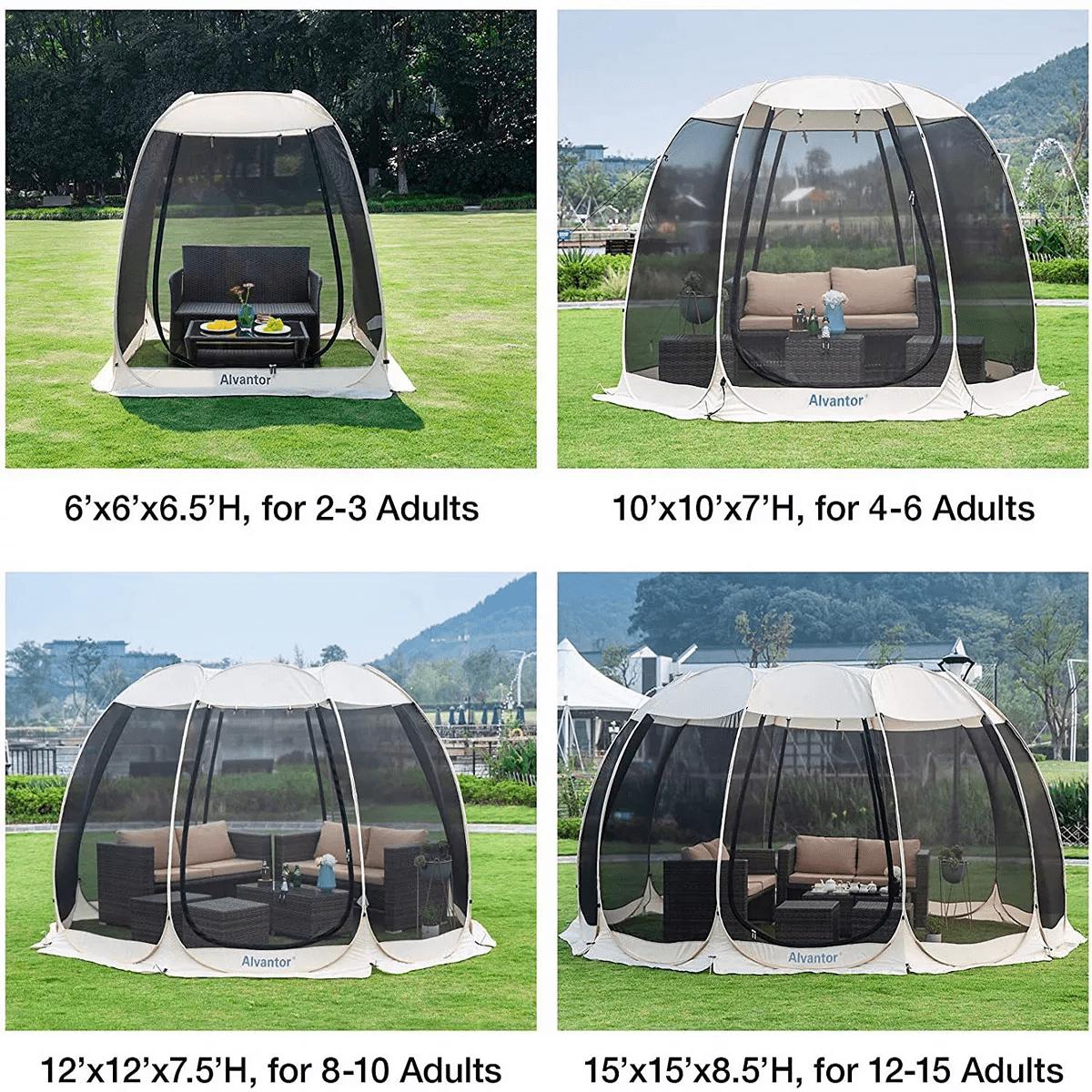 Enjoy the outdoors by using Alvantor 15′ x 15′ Instant Canopy Screen House Beige. It’s pop up style and easy to set up, so do-it-yourselfers can put it to use quickly. This instant canopy has UV 50+ protection canopy to keep the sun off those who are inside. The mesh walls offer the perfect air ventilation. It has two zippered doors for simple entry and exit as well. The bug-free canopy provides protection from insects on all sides. It is the best choice for picnic, barbecue and party in the backyard and park! This pop up screen gazebo has plenty of space, light-weight and fold compact for easy transport.