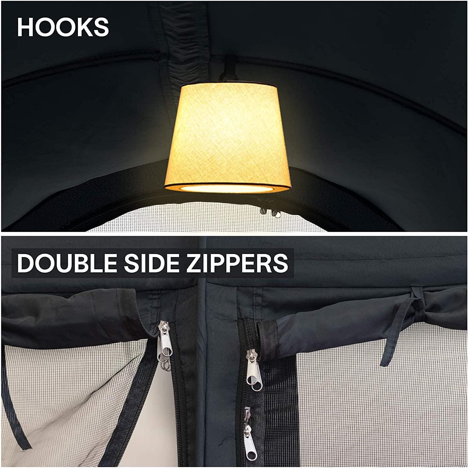 – Fold down instant and figure 8 into compact portable carrying bag, size 22 x 22 x 2 inches and weight 7 lbs. The privacy curtain is washable clean and easy to store. When laundry, just unzip the end of arc pole sleeves and pull out the pole. After laundry, insert the poles and zip the pole sleeve.