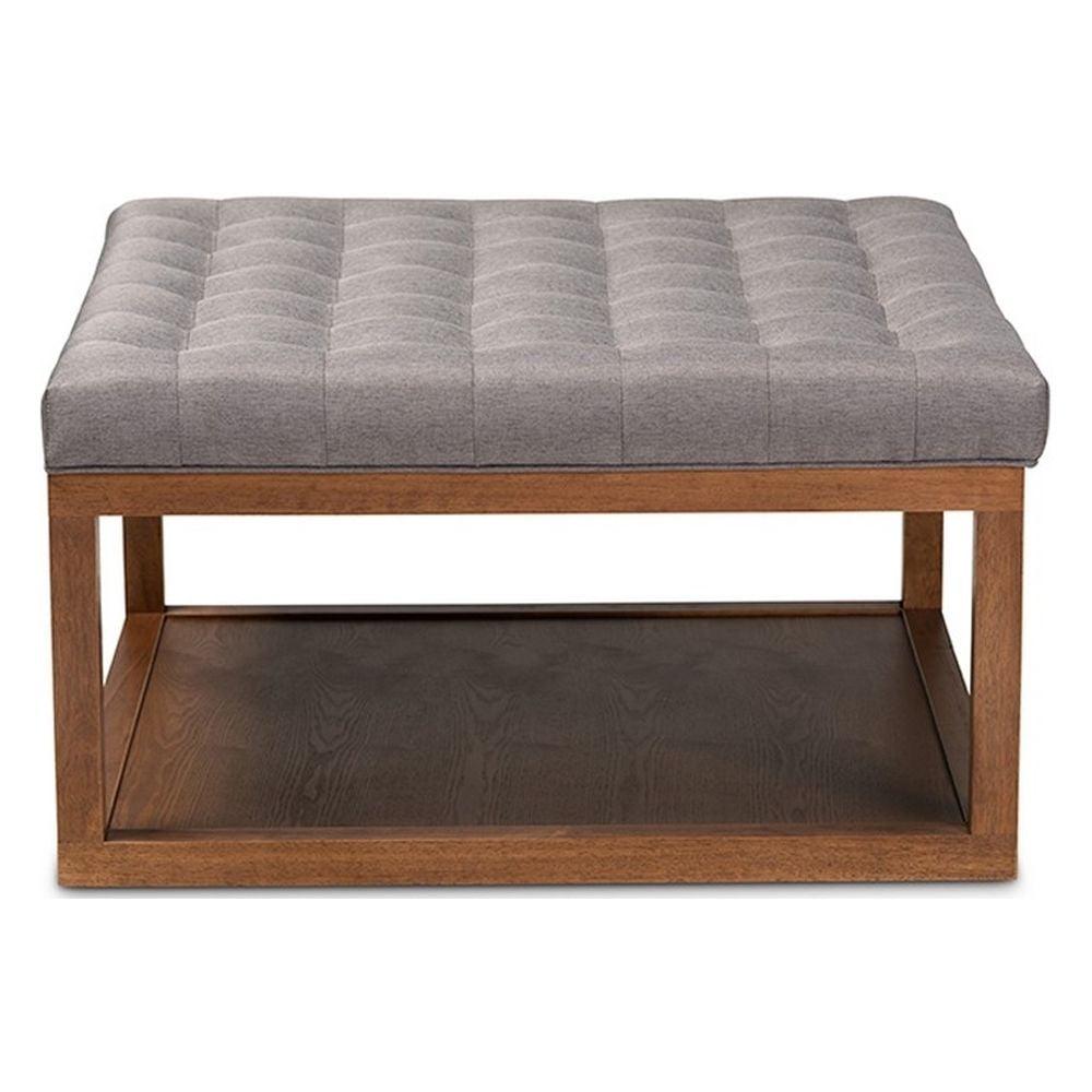 Alvere Modern and Contemporary Grey Fabric Upholstered Walnut Finished Cocktail Ottoman