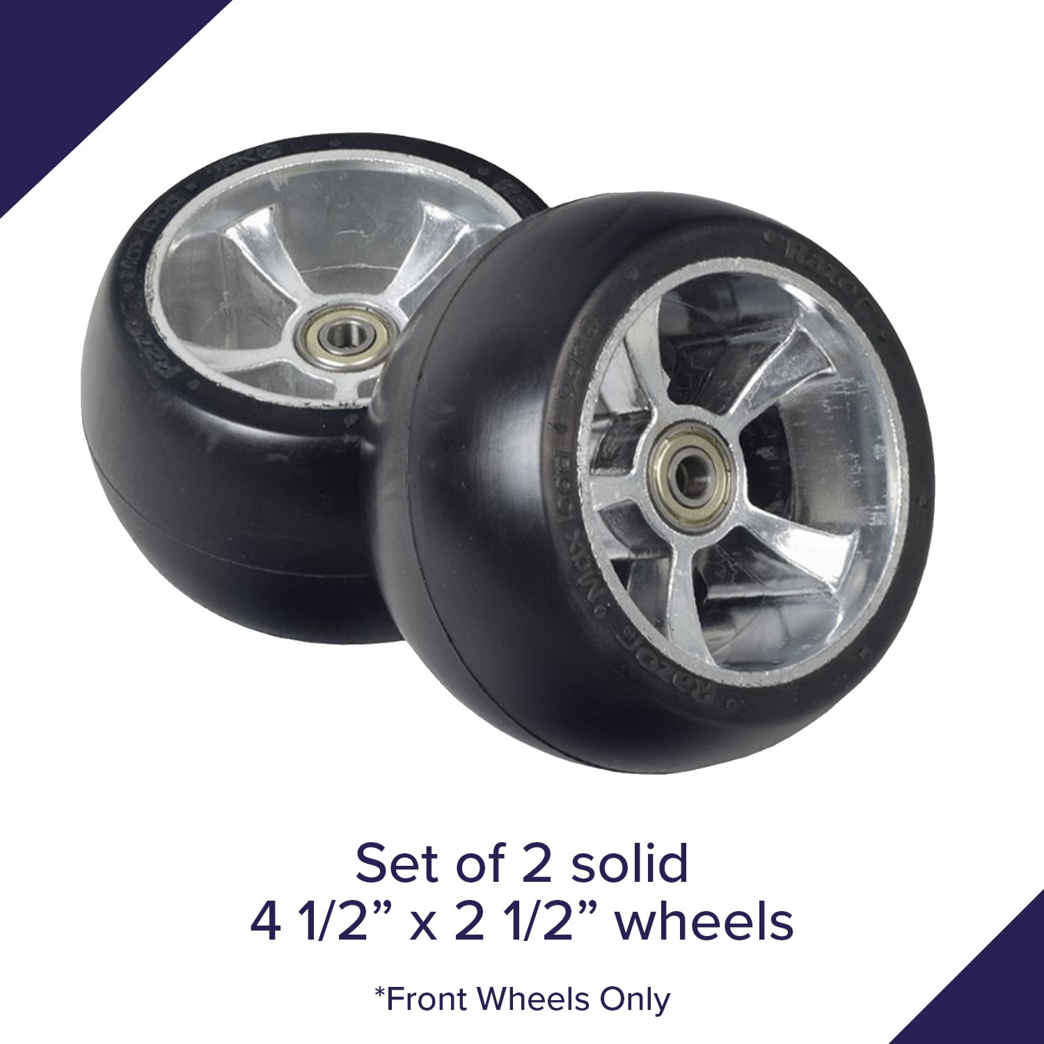 AlveyTech Front Wheels for Razor Ground Force, GFD & Drifter Fury, 4-Wheeler Go-Kart Part (Set of 2)