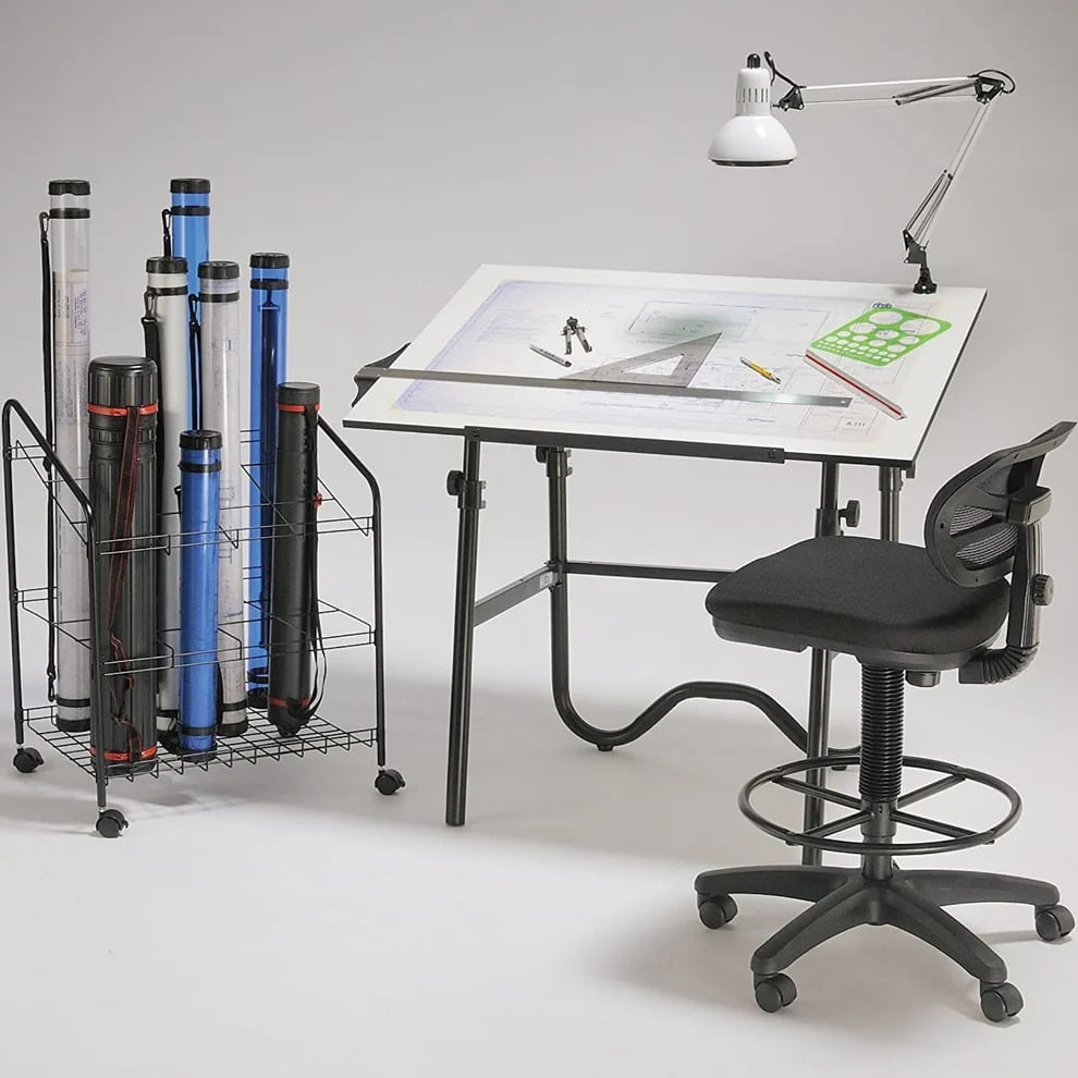 Alvin Wire Bin Roll File 20 Slots, twenty 4″ x 4″ openings make this heavy-duty storage bin an ideal organizer for rolled maps, plans, drawings, and tubes. The four swivel casters give it high mobility. Constructed of black plastic coated heavy gauge steel rods. Overall dimensions: 30″h x 22″w x 18″d. Assembly required. Shipping weight 11 lbs.