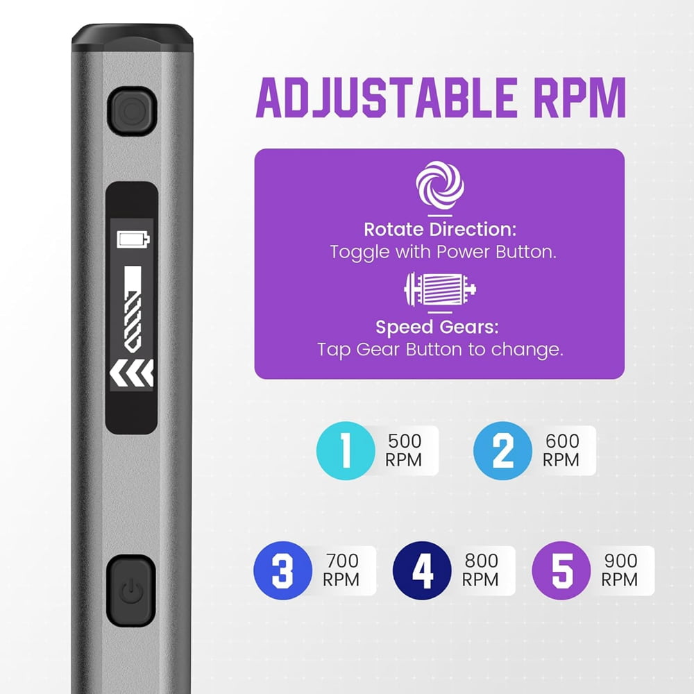 The SDS ULTRA Mini Electric Drill Pen is designed for on-the-go crafting. Its compact size and lightweight construction make it easy to carry and use anywhere, whether you’re at home, in the workshop, or on the move. Experience efficient and precise drilling with the SDS ULTRA. Its adjustable RPM (up to 700RPM) allows you to tailor the drilling speed to different materials, providing smooth and accurate results every time. The SDS ULTRA comes with a set of 10 drill bits in various sizes (ranging from 0.6mm to 2.2mm) with a 2.35mm diameter shaft. Made from titanium-coated steel, these bits are highly durable and ideal for working with wood, aluminum, plastic, and even circuit boards. Equipped with a high-capacity 500mAh lithium polymer battery, the SDS ULTRA ensures extended working hours on a single charge. The USB-C port provides quick and convenient charging, so you can get back to your projects without delay. Product list: (1x) SDS Ultra Electric Drill Pen (1x) Aluminum alloy storage box (1x) Manual (1x) Type-C USB cable (10x) Drill Bits