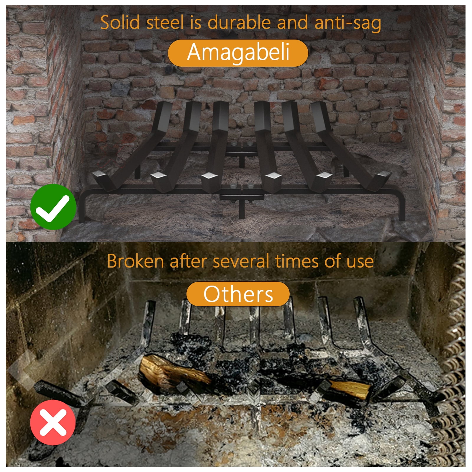 Amagabeli 24″ fireplace ember grate is constructed of a heavy gauge, expanded metal that is welded to the cross bars for strength and durability. It has a enough clearance to keep a good draft under the firewood, and holds the embers on the grate for a hot, complete burn. The four strong legs help to prevent sagging due to heat and the weight of the firewood. An electro-forging process produces a well-fabricated grate that is made to last . This grate has 7 bars and measures 24″ Wide in the front x 20″Wide in the back. Assembled Product Weight:20 Pounds