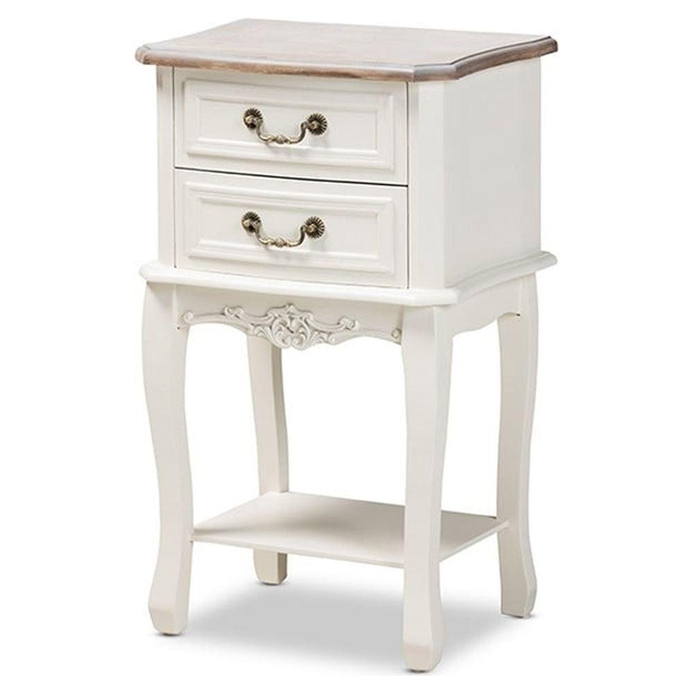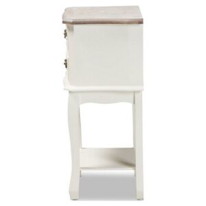 Amalie Antique French Country Cottage Two-Tone White and Oak Finished 2-Drawer Wood Nightstand