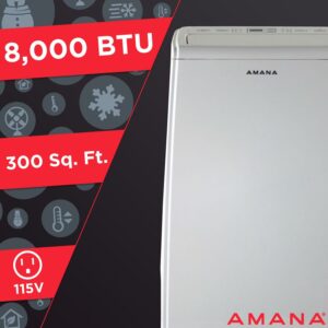 – Your home is your sanctuary, and you want to be comfortable. You don t need complicated machines with fussy features to keep you cool. What Amana gives you in this portable air conditioner is a simple, reliable, 8,000 BTU (ASHRAE) / 5,500 BTU (DOE) portable air conditioner to cool your bedroom, home office, family room, or other small to medium rooms up to 450 sq. ft.
