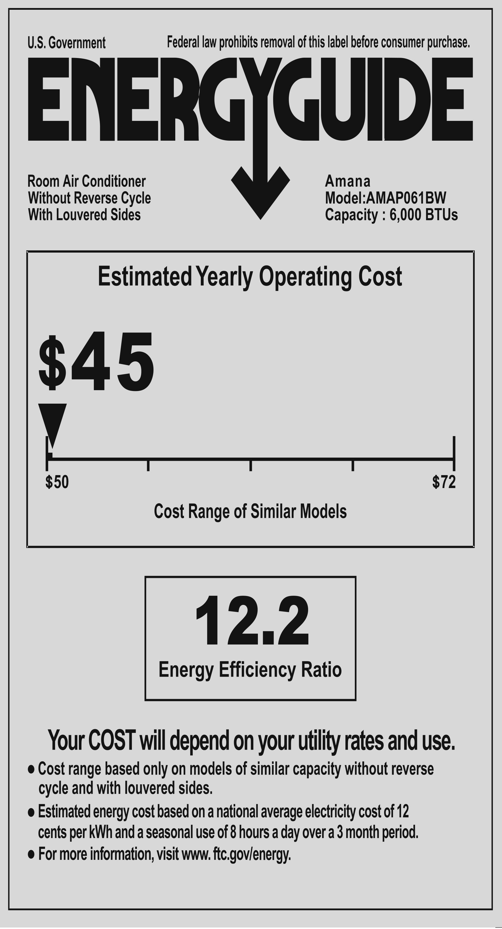 Have you ever stood in front of the refrigerator to cool off? Affordable and easy to install the Amana 6000 BTU window-mounted air conditioner quickly cools and dehumidifies a room up to 250 square feet. Flexible comfort features include three cooling speeds Eco mode and Sleep mode. With our programmable timer you can customize cooling time to fit your schedule for immediate comfort when you get home. Maintenance is made easy with the removable and washable air filter. Simply rinse every few weeks to keep your air conditioner at peak performance. At Amana we have exactly what you need to keep cool and dry.