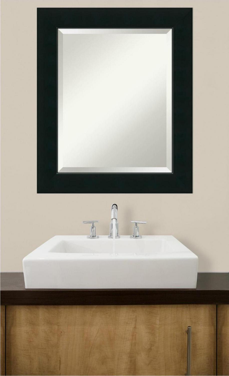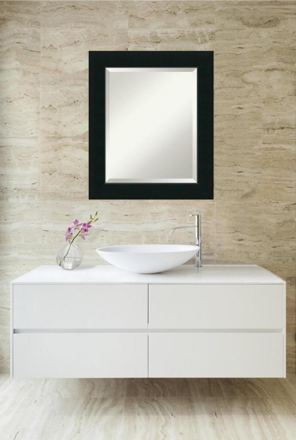 Amanti Art Beveled Wood Bathroom Wall Mirror – Corvino Black Frame Corvino Black Outer Size: 21 x 25 in