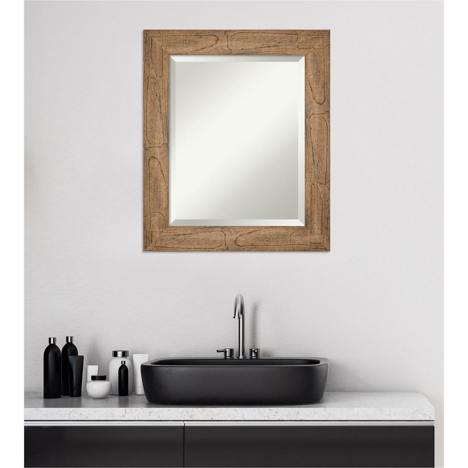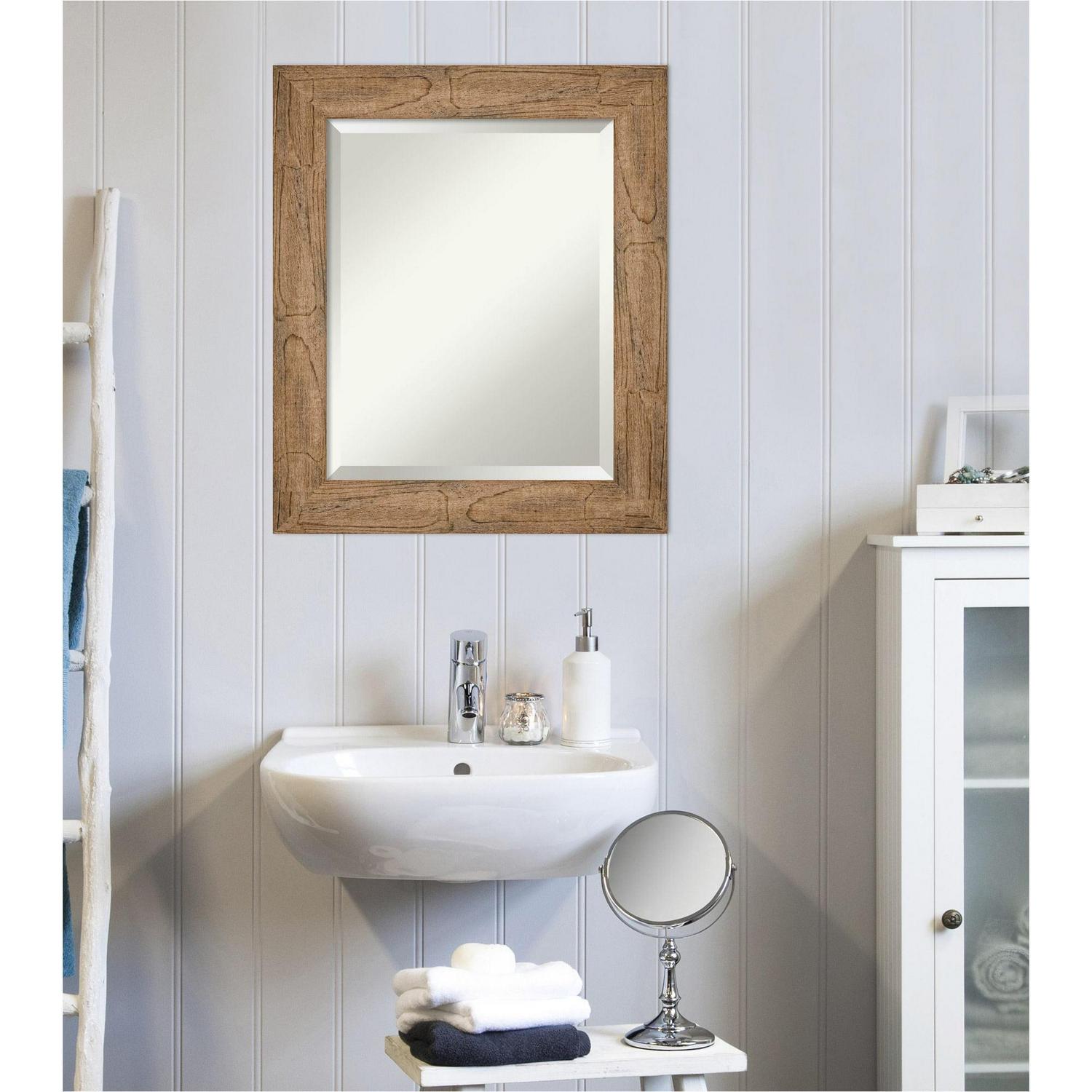 Amanti Art Beveled Wood Bathroom Wall Mirror – Owl Brown Frame Outer Size: 22 x 26 in