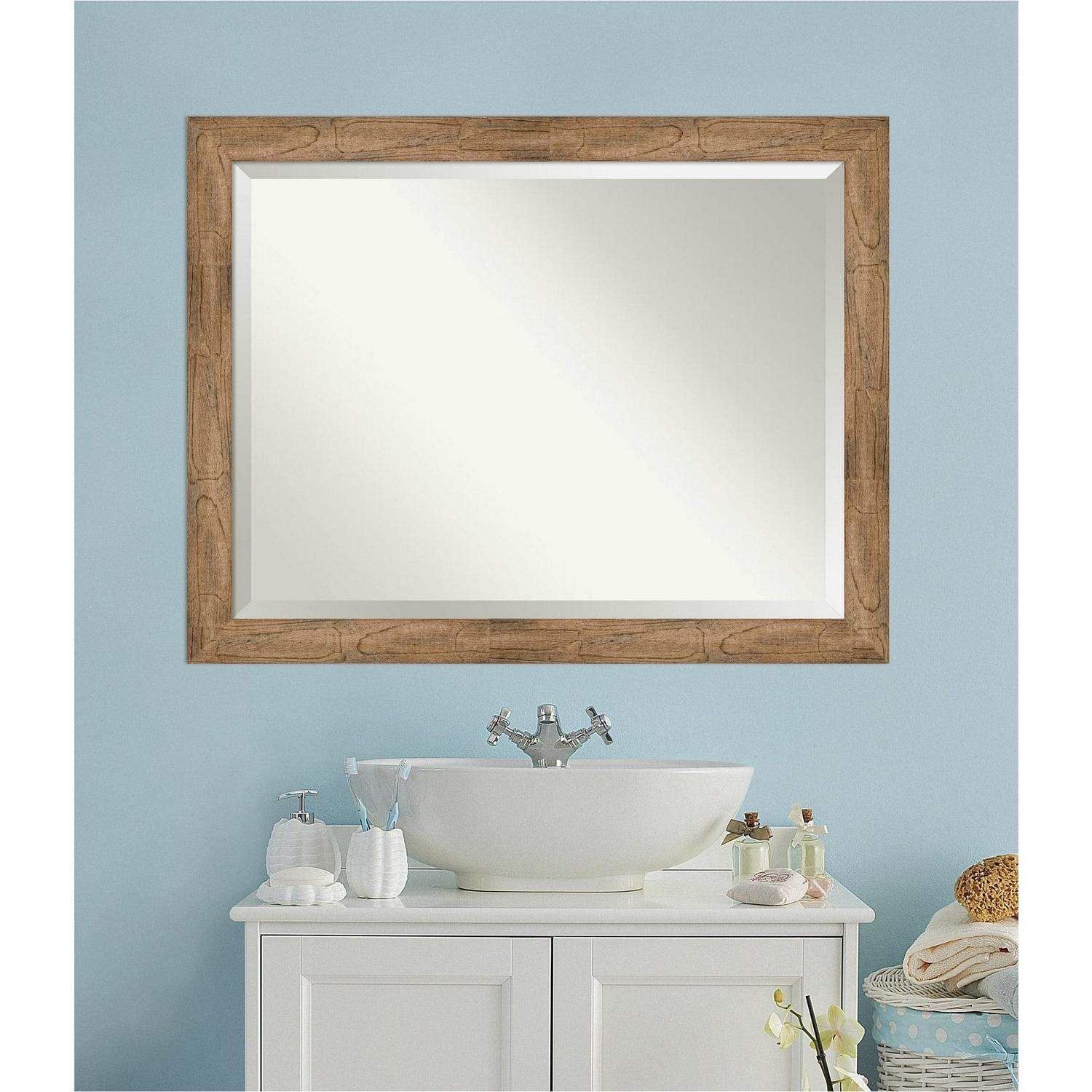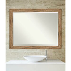 Amanti Art Beveled Wood Bathroom Wall Mirror – Owl Brown Frame Outer Size: 46 x 36 in