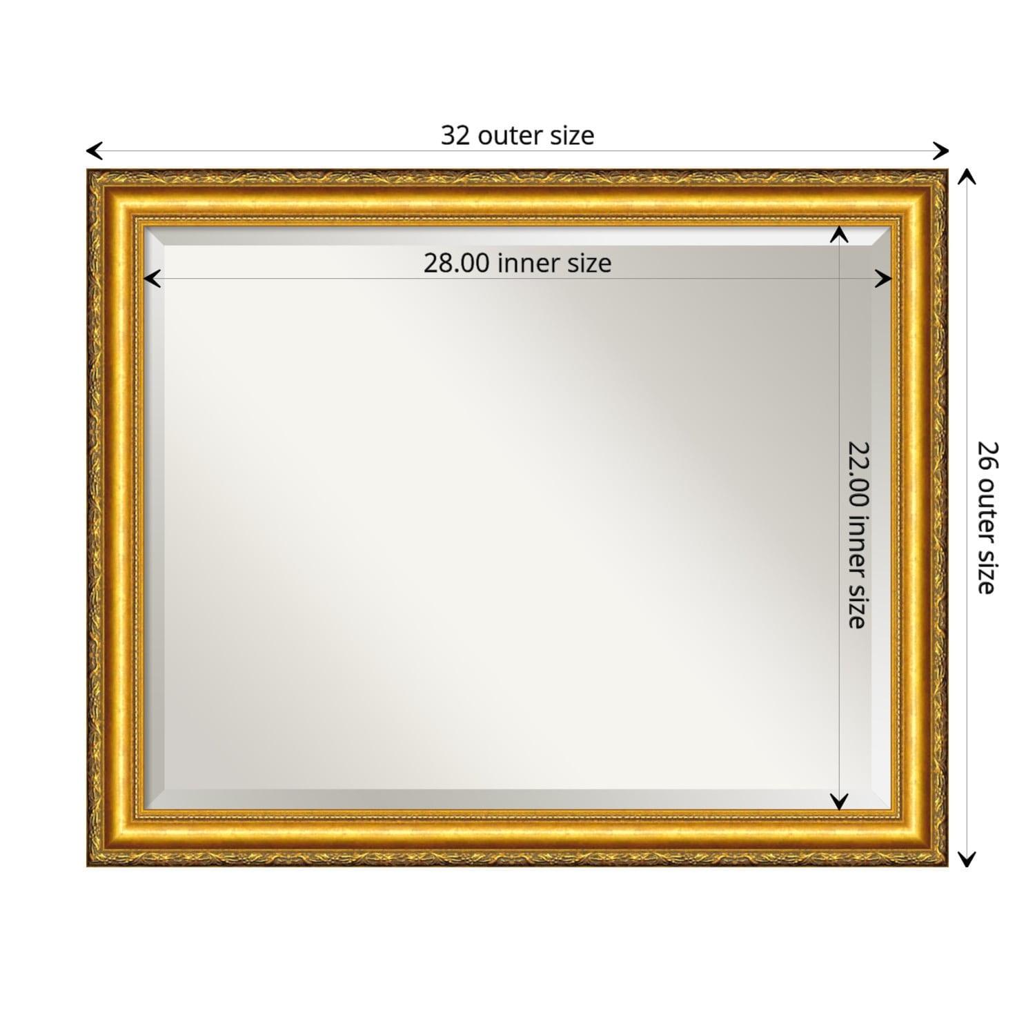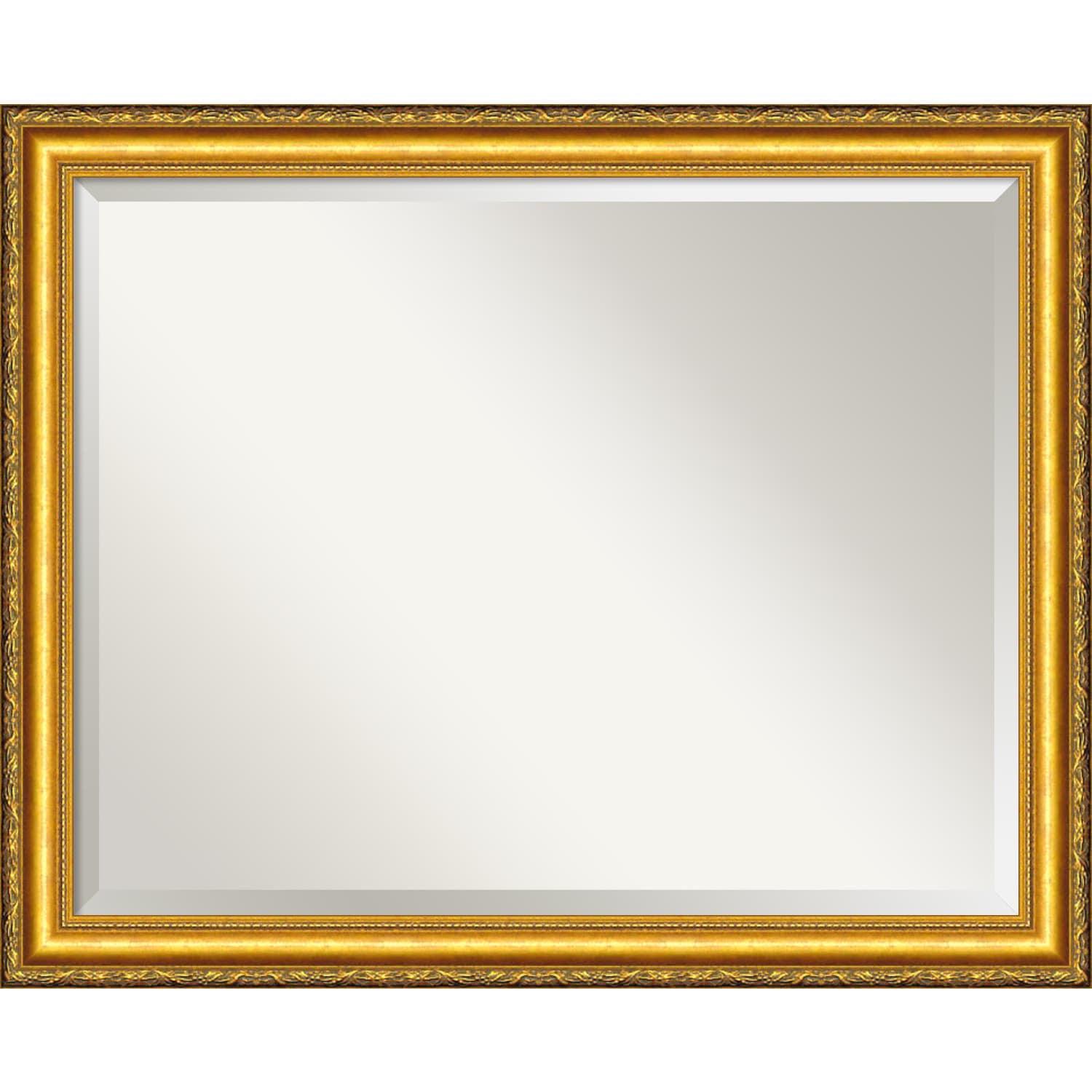 Amanti Art Beveled Wood Wall Mirror – Colonial Embossed Gold Frame – Outer Size: 32 x 26 in