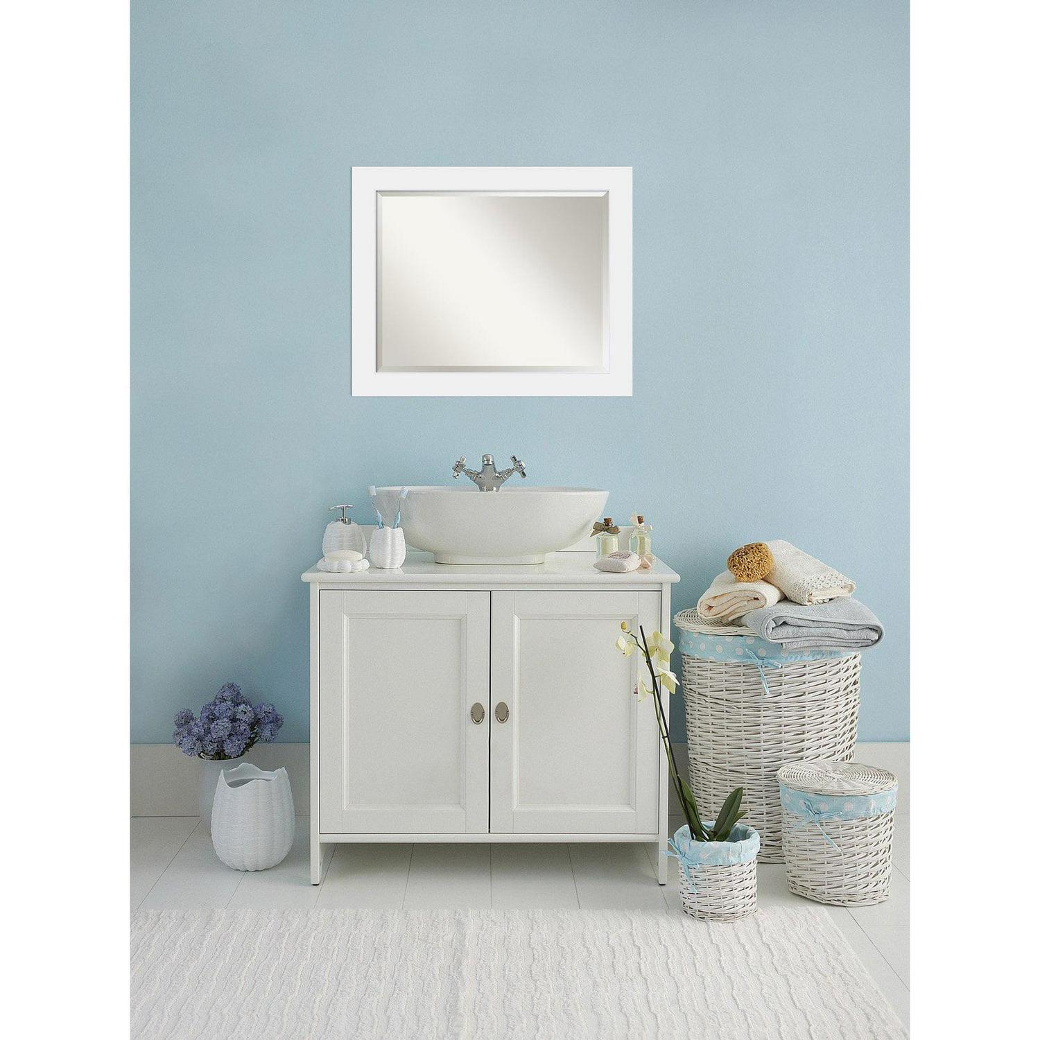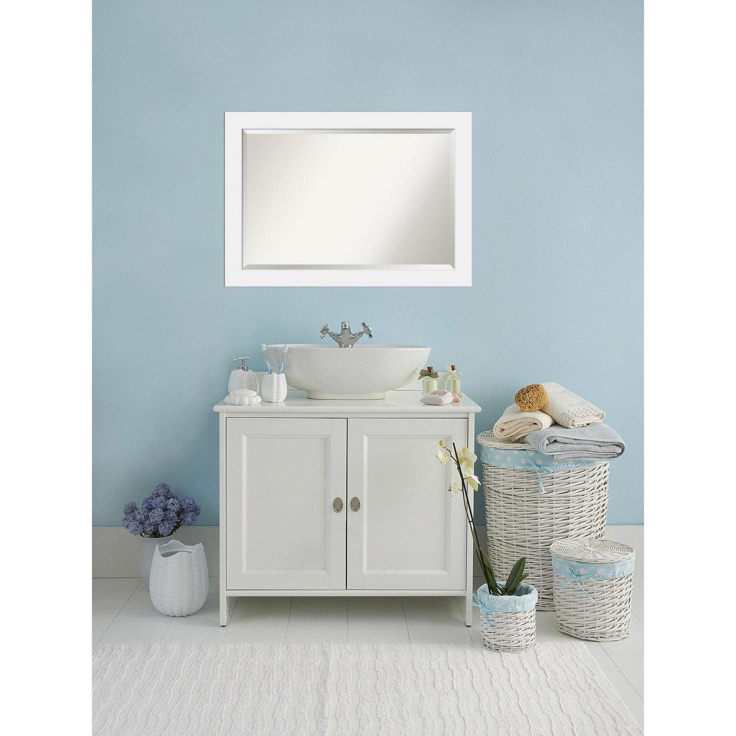 Give your bathroom the finishing touch with this 100% real wood Beveled Wall Mirror framed with the Corvino White frame. Individually made using traditional custom framing techniques, it has the quality you would expect from your local frame shop. It holds its value with premium finishing that can be appreciated up close.