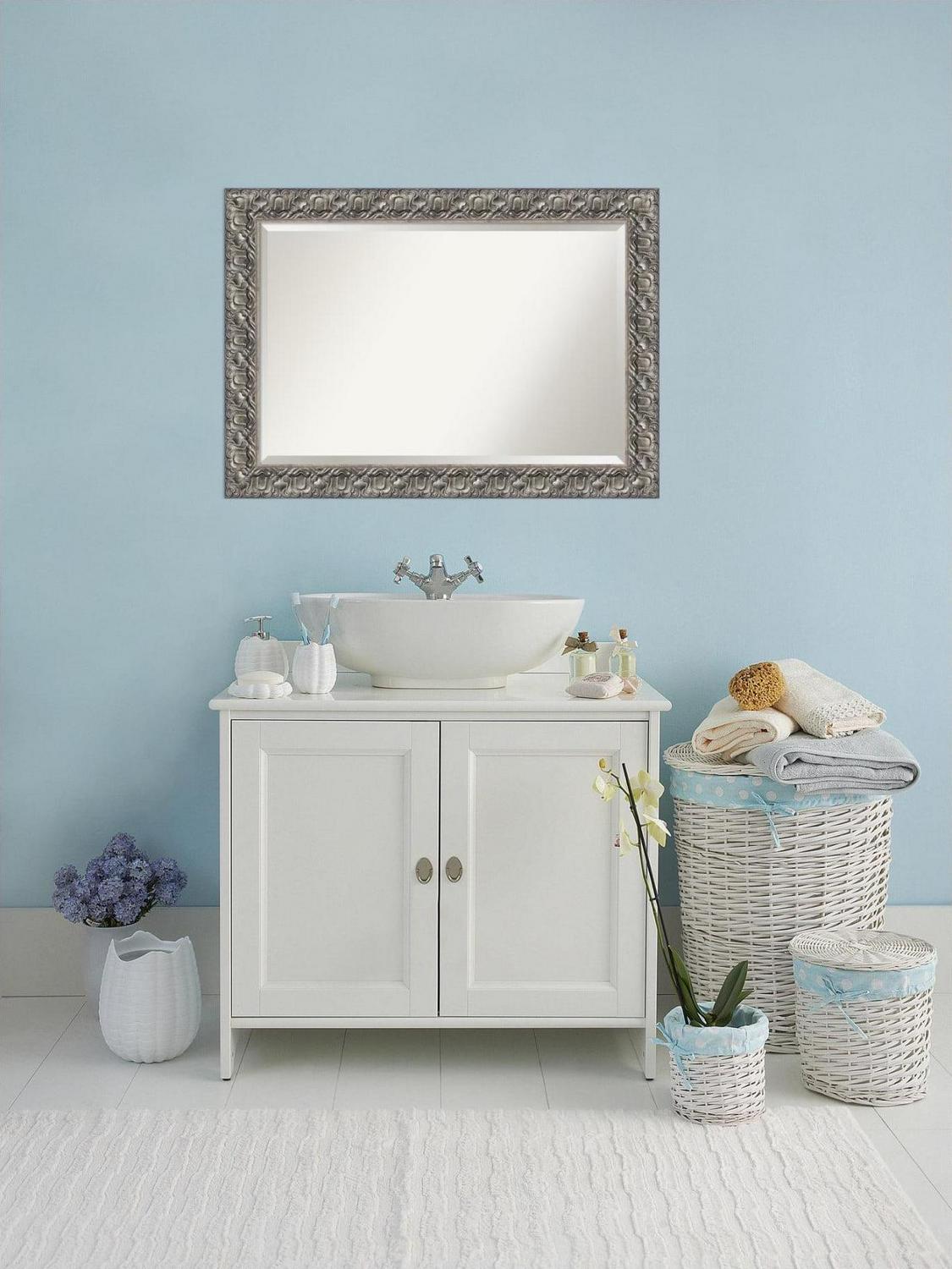 Give your bathroom the finishing touch with this 100% real wood Beveled Wall Mirror framed with the Silver Luxor frame. Individually made using traditional custom framing techniques, it has the quality you would expect from your local frame shop. It holds its value with premium finishing that can be appreciated up close.