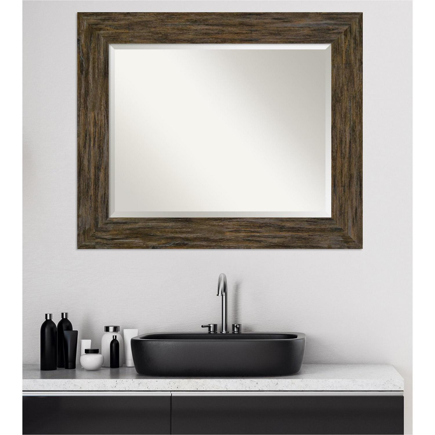 Give your bathroom the finishing touch with this 100% real wood Beveled Wall Mirror framed with the Fencepost Brown frame. Individually made using traditional custom framing techniques, it has the quality you would expect from your local frame shop. It holds its value with premium finishing that can be appreciated up close.